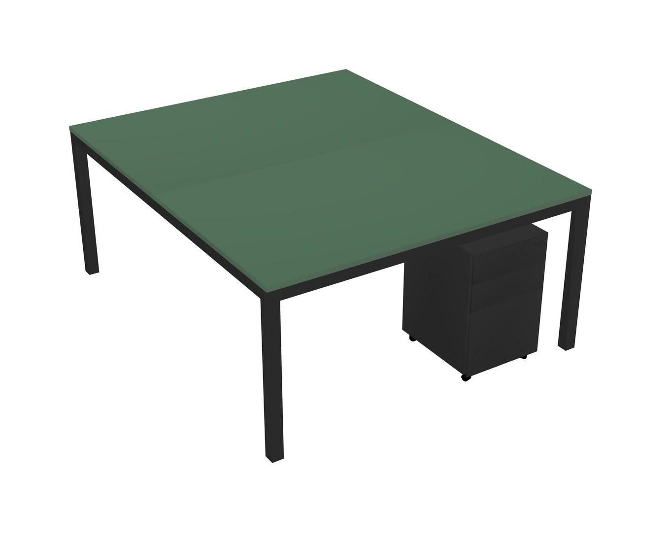 Green Shared Rectangular Office Desk With Metal Mobile Drawers For 2 Persons