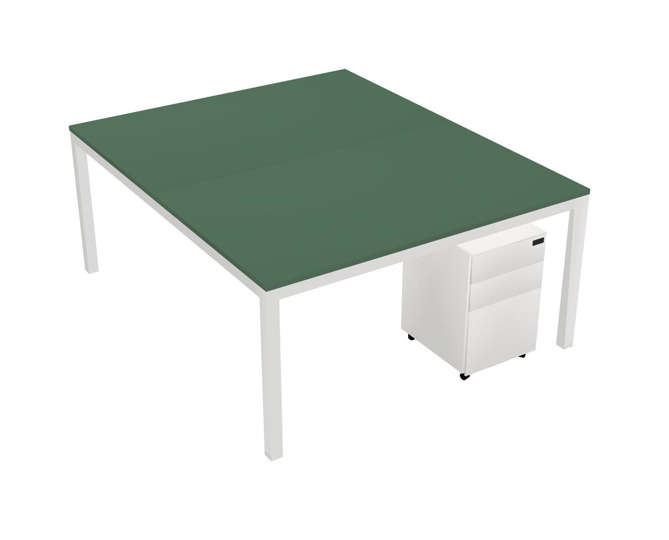 Green Shared Rectangular Office Desk With Metal Mobile Drawers For 2 Persons