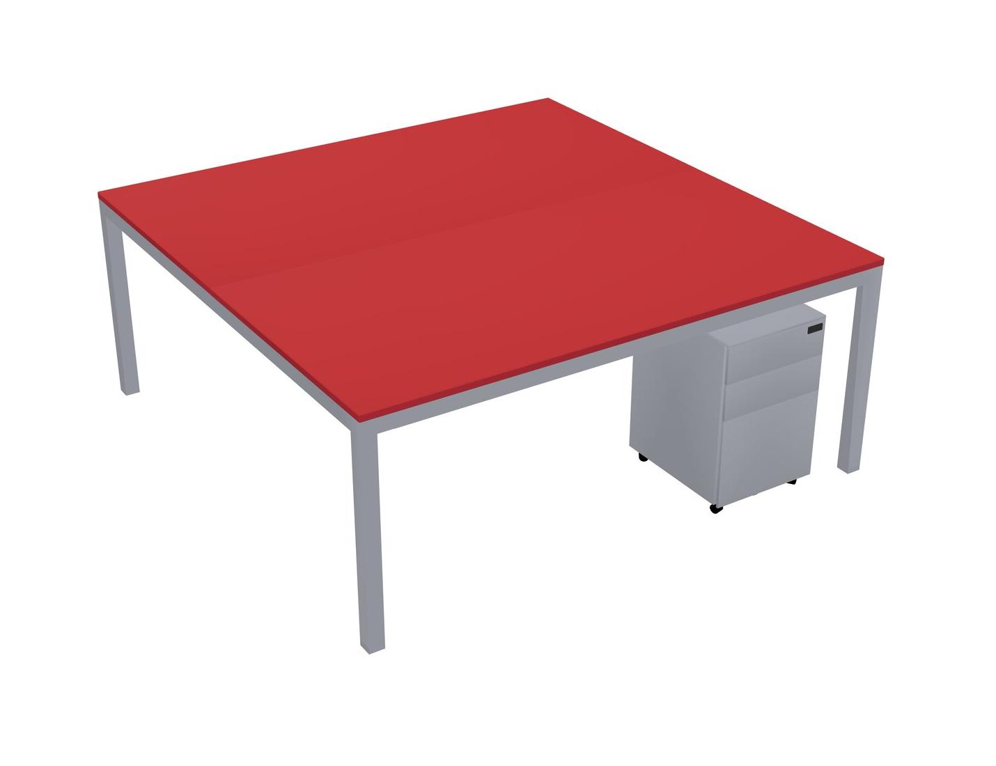 Prism Red Shared Rectangular Office Desk With Metal Mobile Drawers For 2 Persons