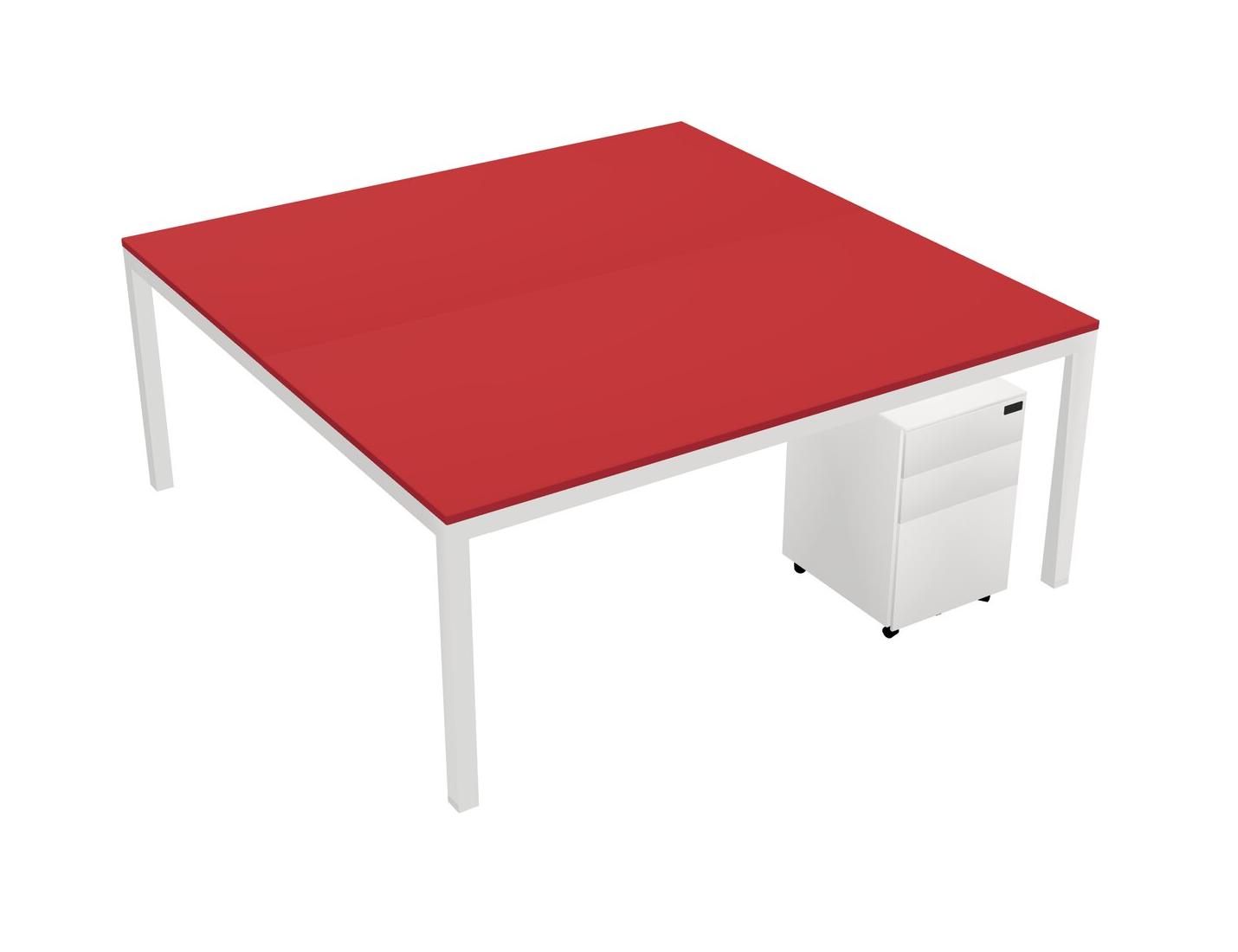 Prism Red Shared Rectangular Office Desk With Metal Mobile Drawers For 2 Persons