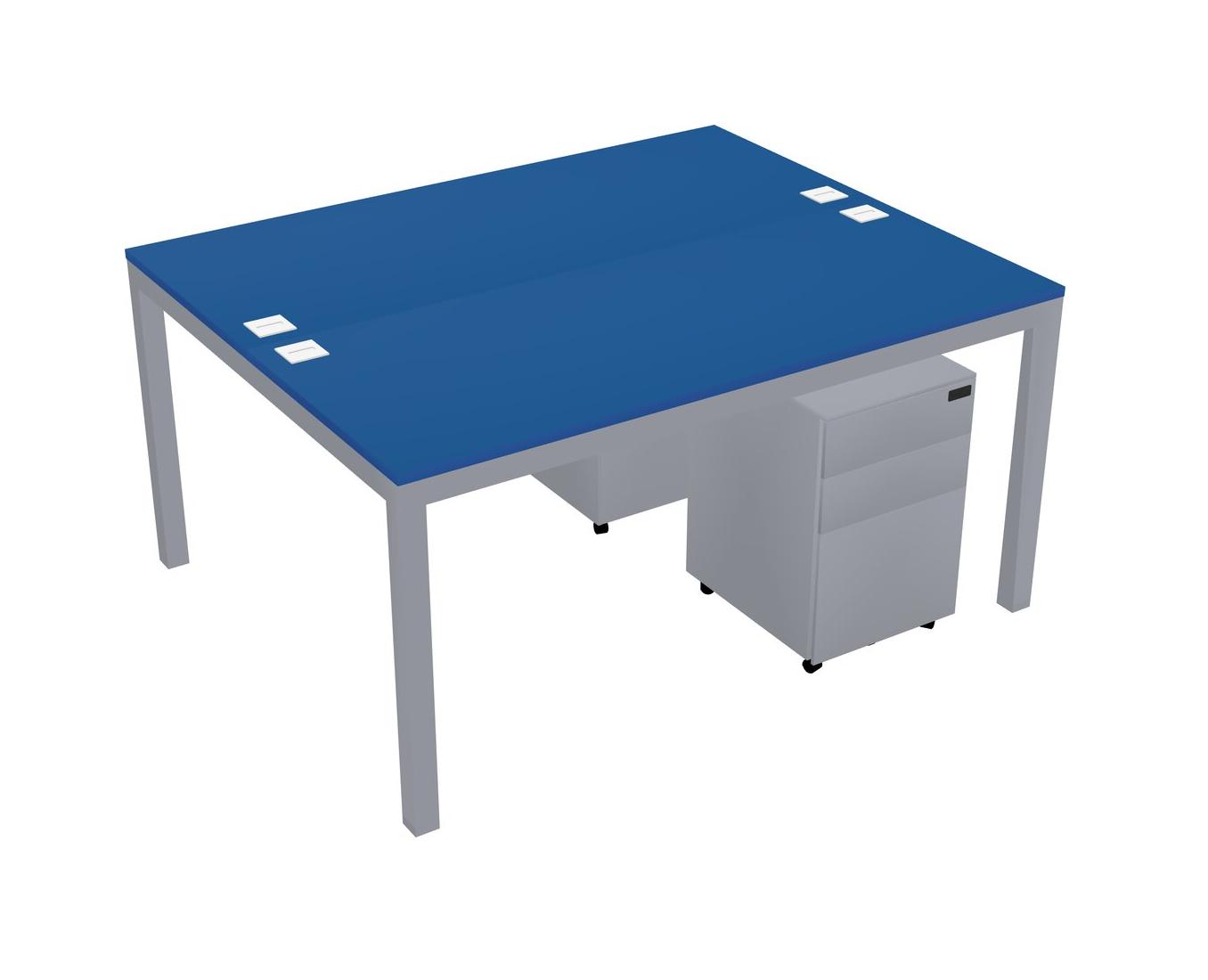 Prism Blue Shared Rectangular Office Desk With Metal Mobile Drawers For 2 Persons