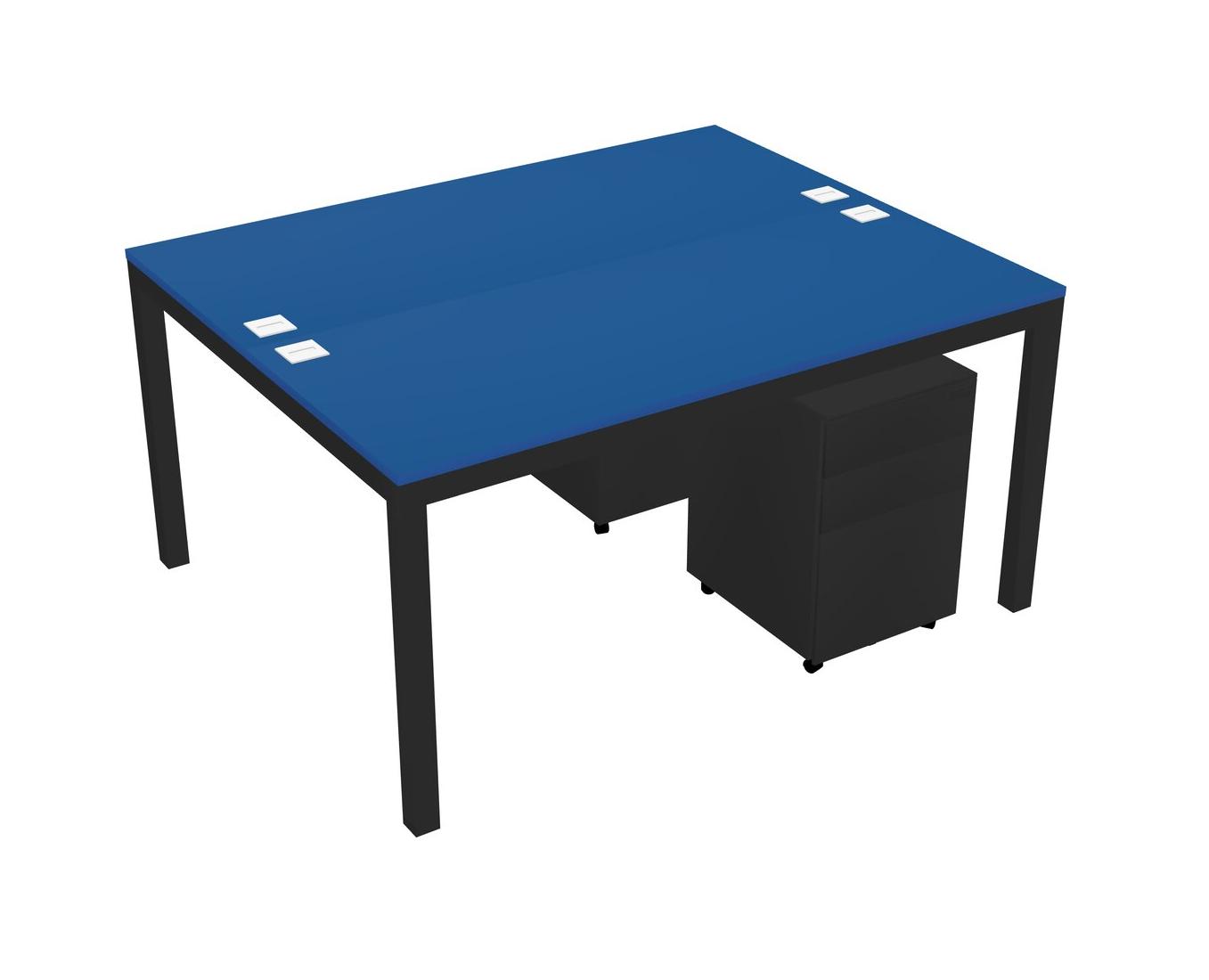 Prism Blue Shared Rectangular Office Desk With Metal Mobile Drawers For 2 Persons