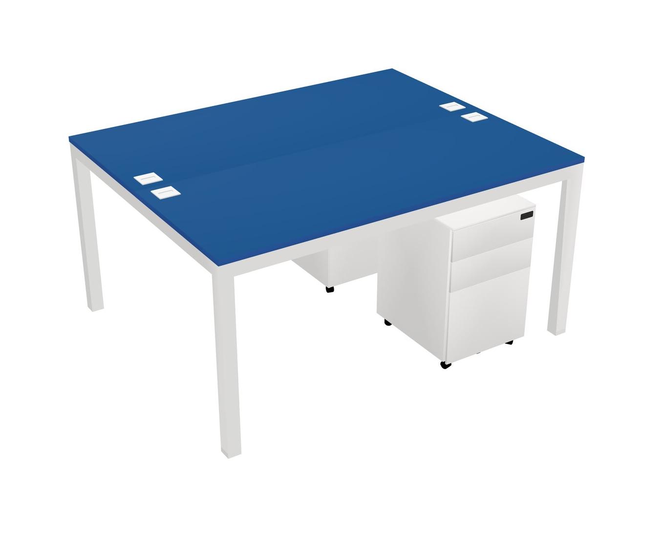 Prism Blue Shared Rectangular Office Desk With Metal Mobile Drawers For 2 Persons