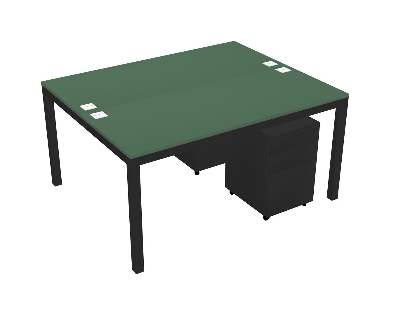 Green Shared Rectangular Office Desk With Metal Mobile Drawers For 2 Persons