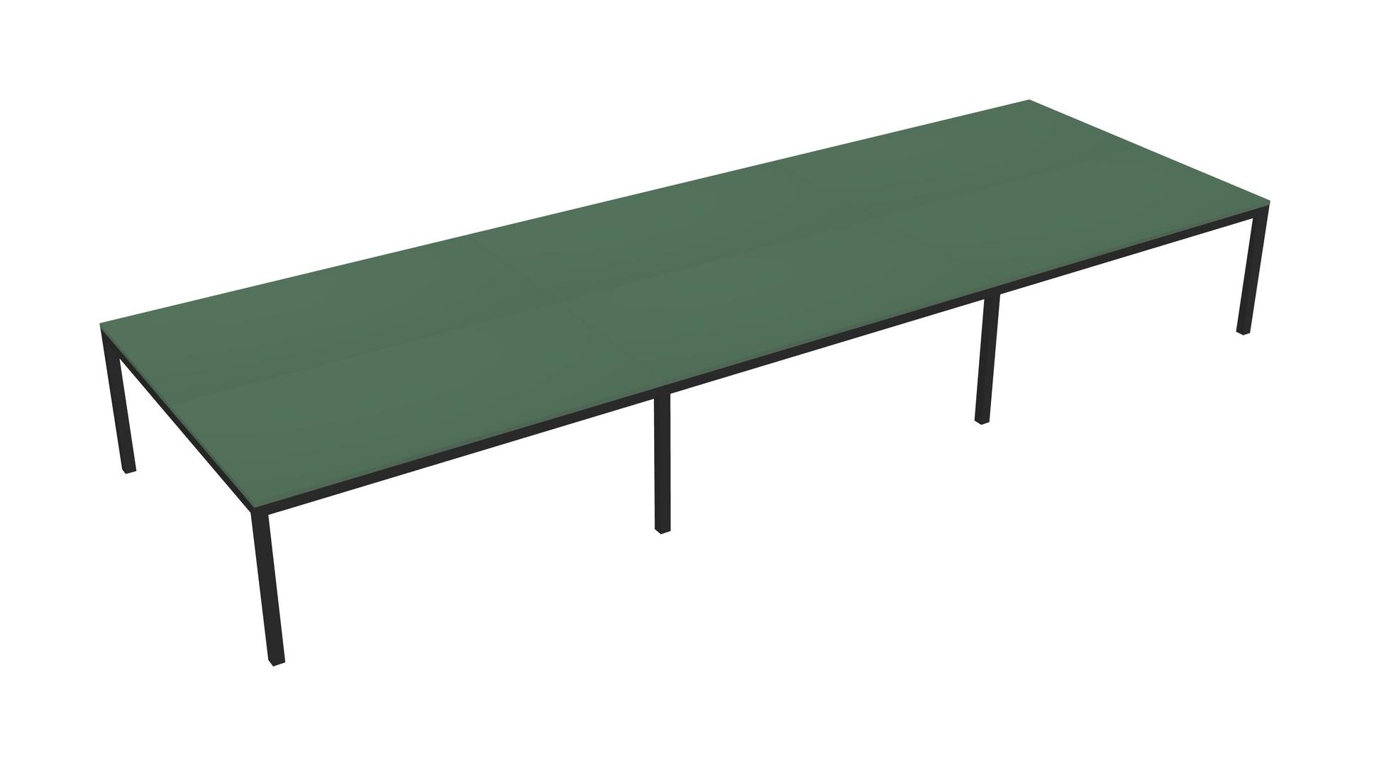 Green Shared Rectangular Office Desk For 6 Persons