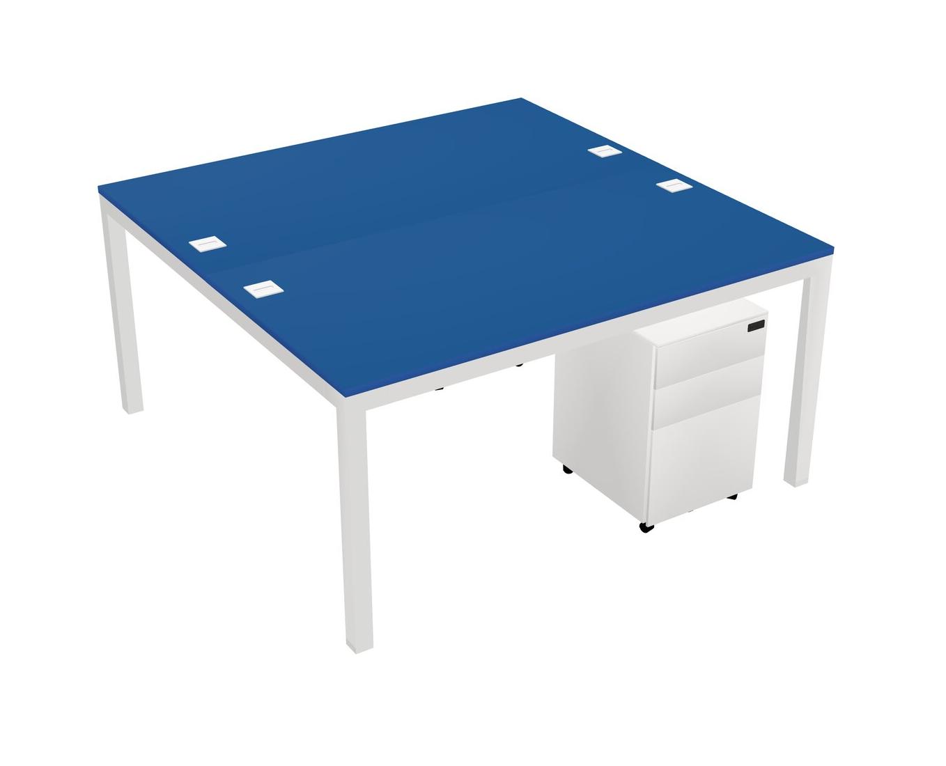 Prism Blue Shared Rectangular Office Desk With Metal Mobile Drawers For 2 Persons