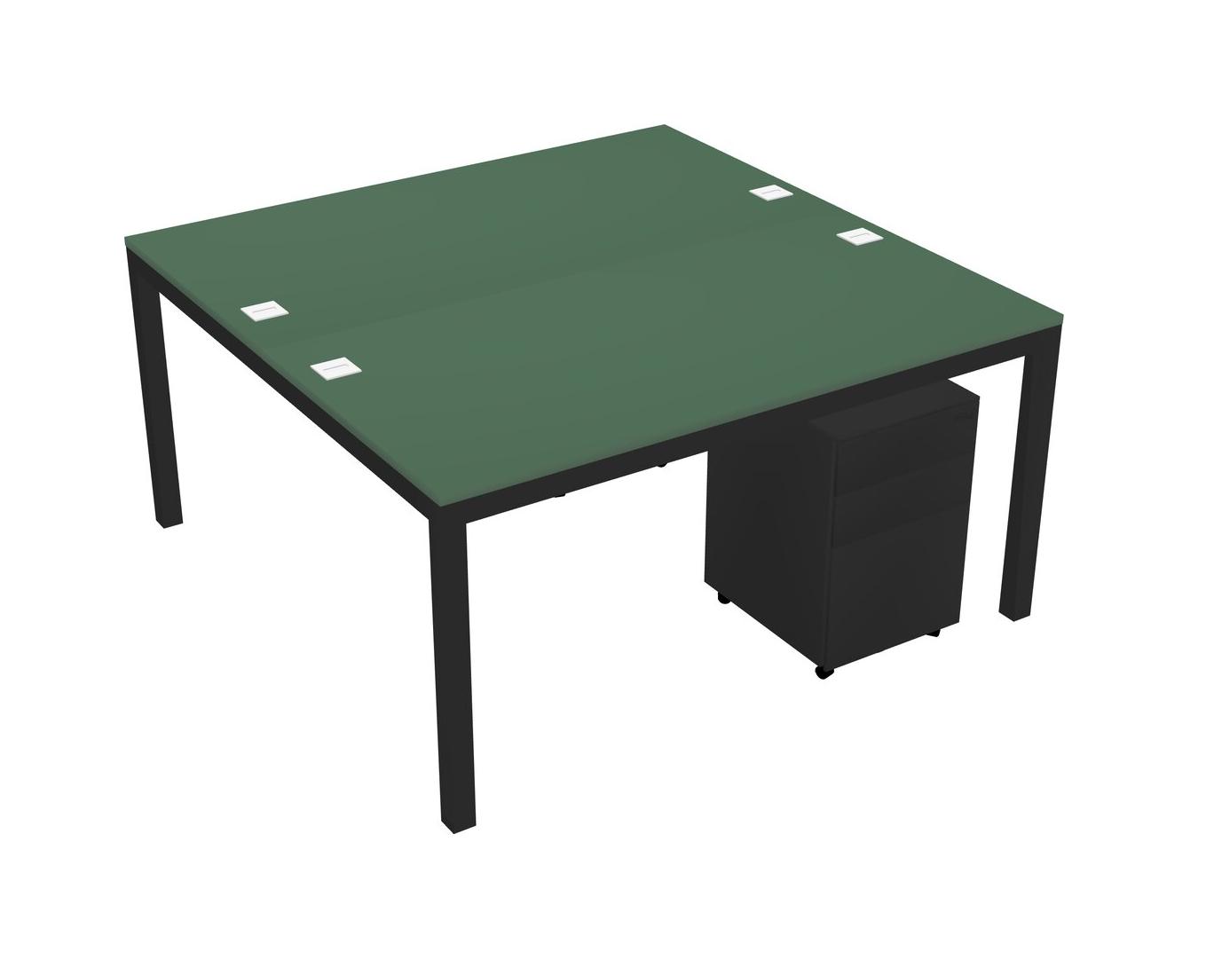 Green Shared Rectangular Office Desk With Metal Mobile Drawers For 2 Persons