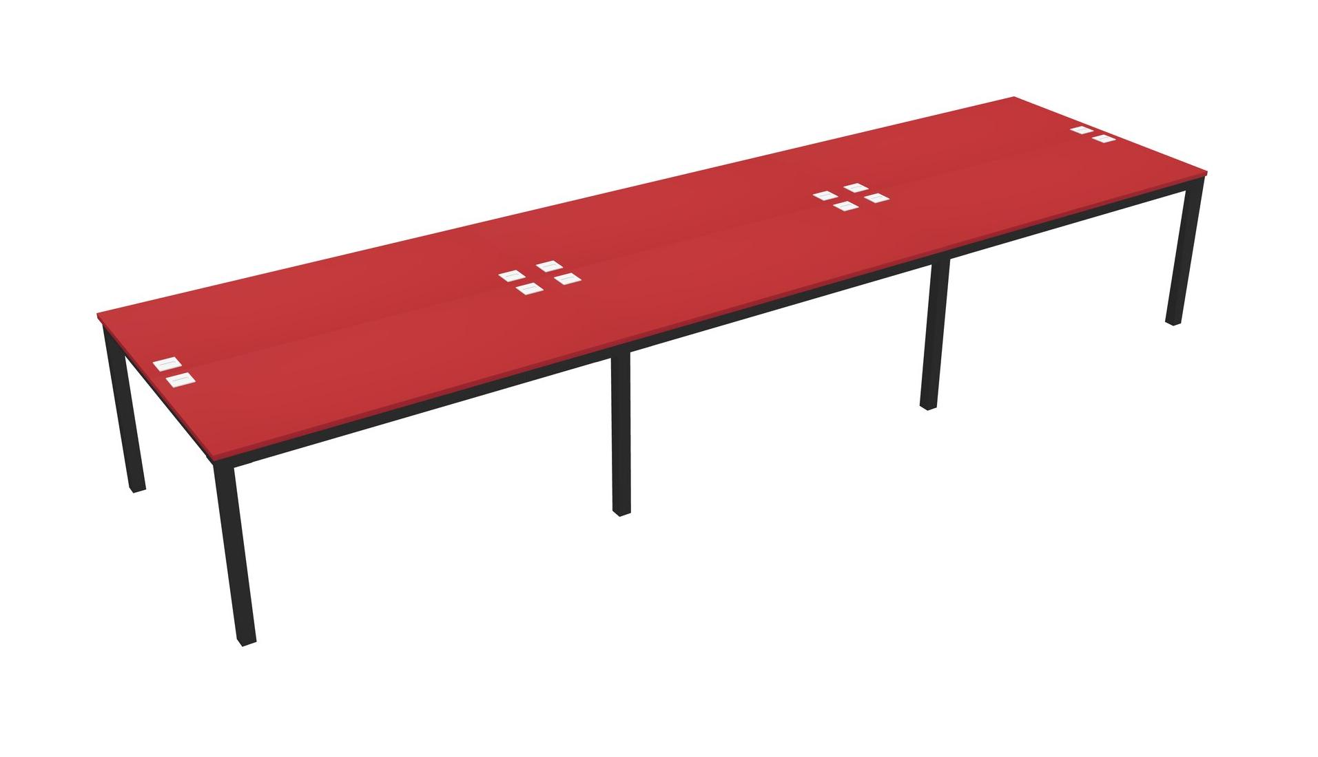 Prism Red Shared Rectangular Office Desk For 6 Persons