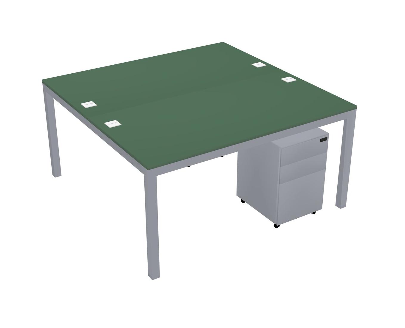 Green Shared Rectangular Office Desk With Metal Mobile Drawers For 2 Persons