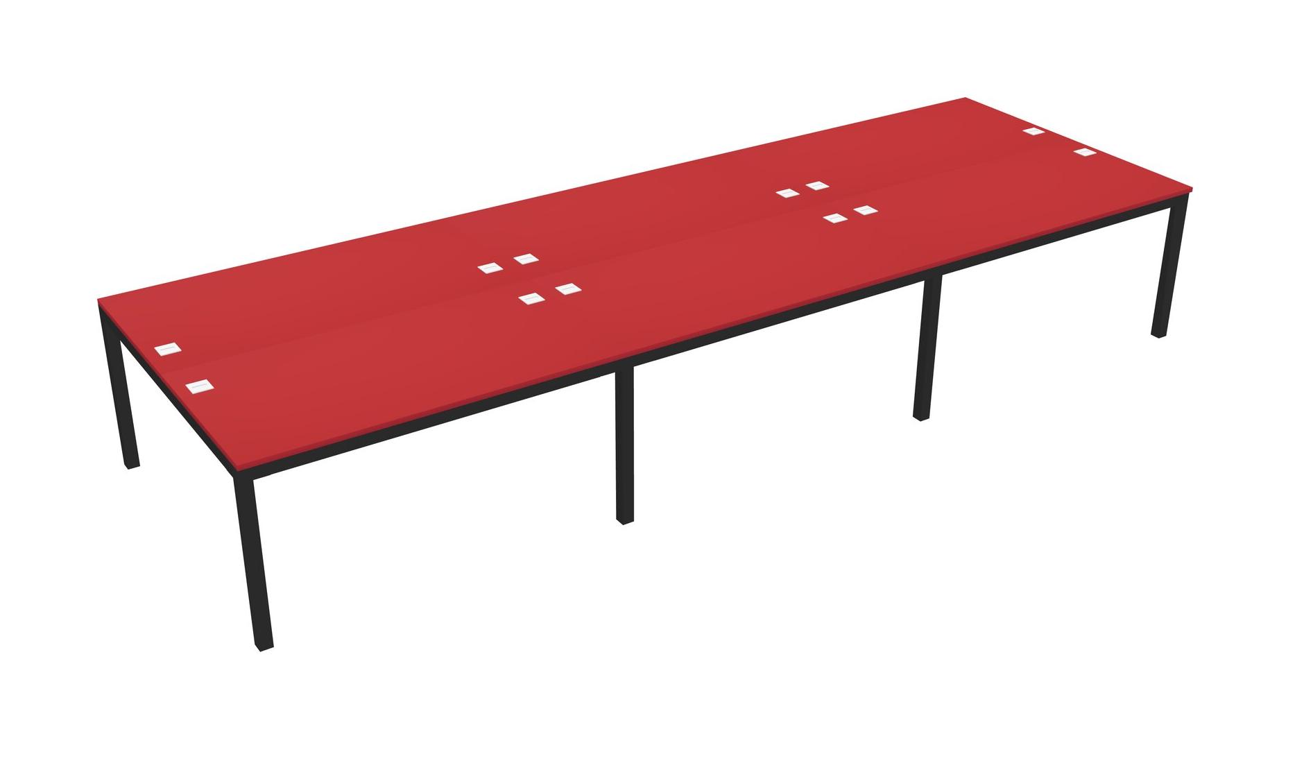 Prism Red Shared Rectangular Office Desk For 6 Persons