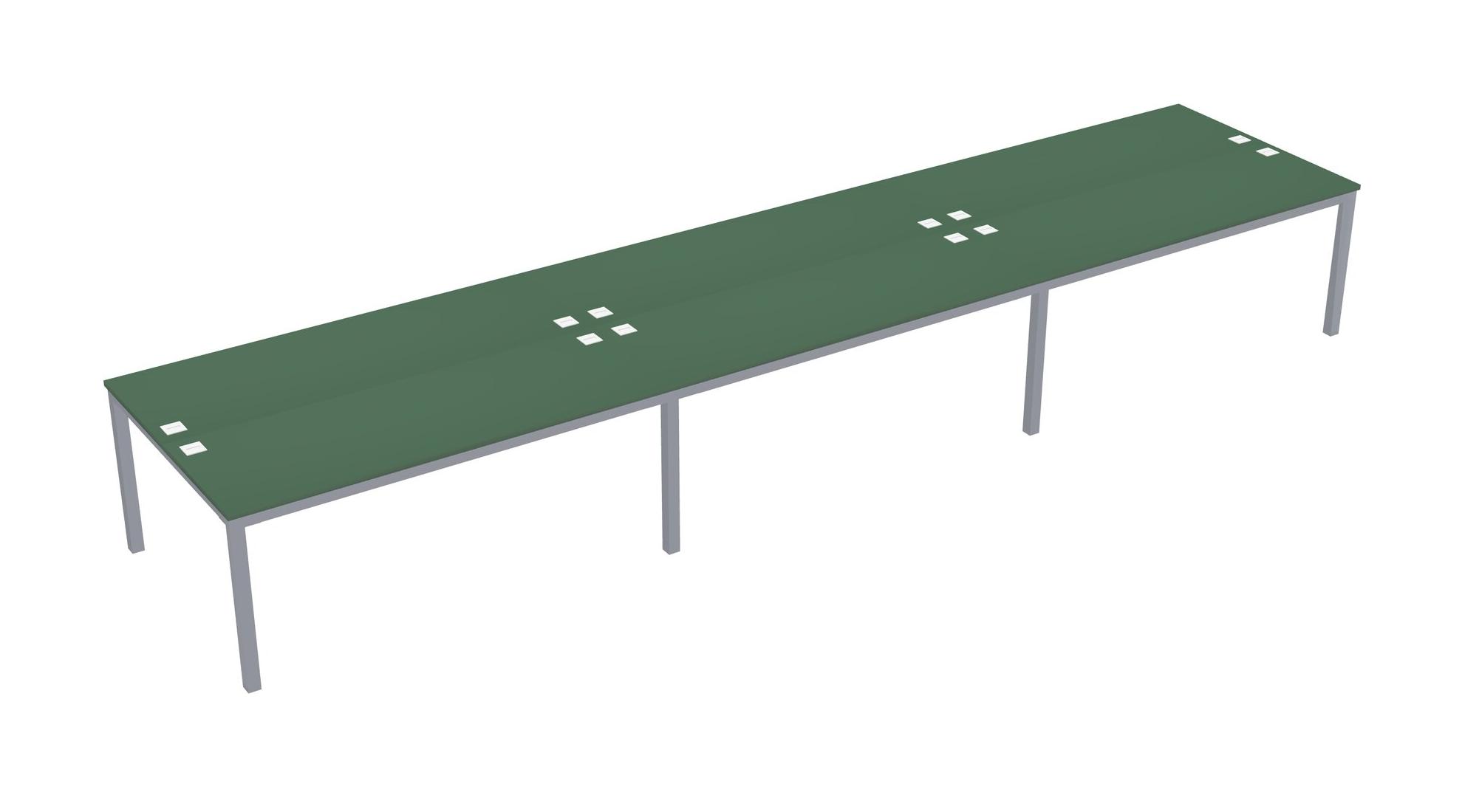 Green Shared Rectangular Office Desk For 6 Persons