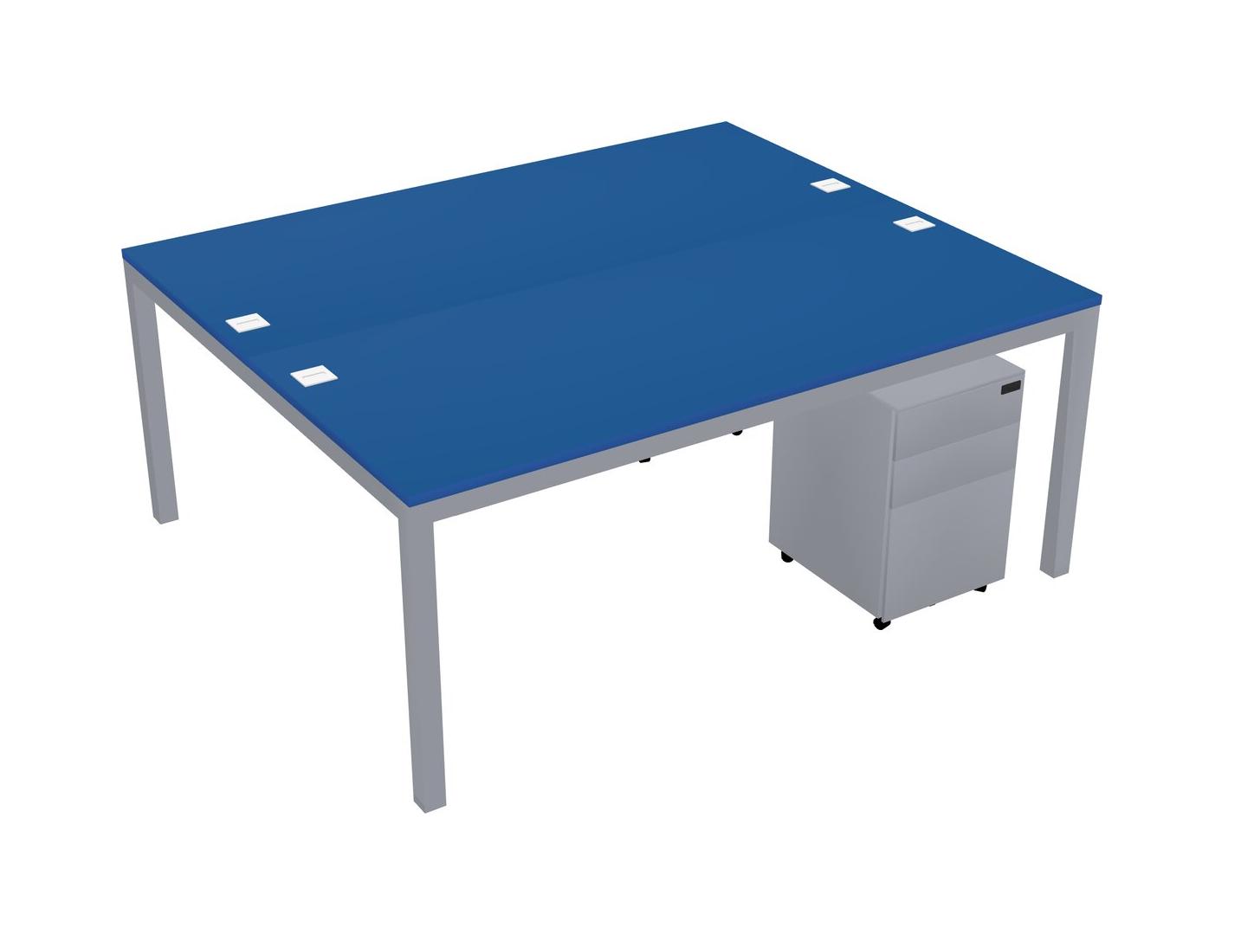 Prism Blue Shared Rectangular Office Desk With Metal Mobile Drawers For 2 Persons
