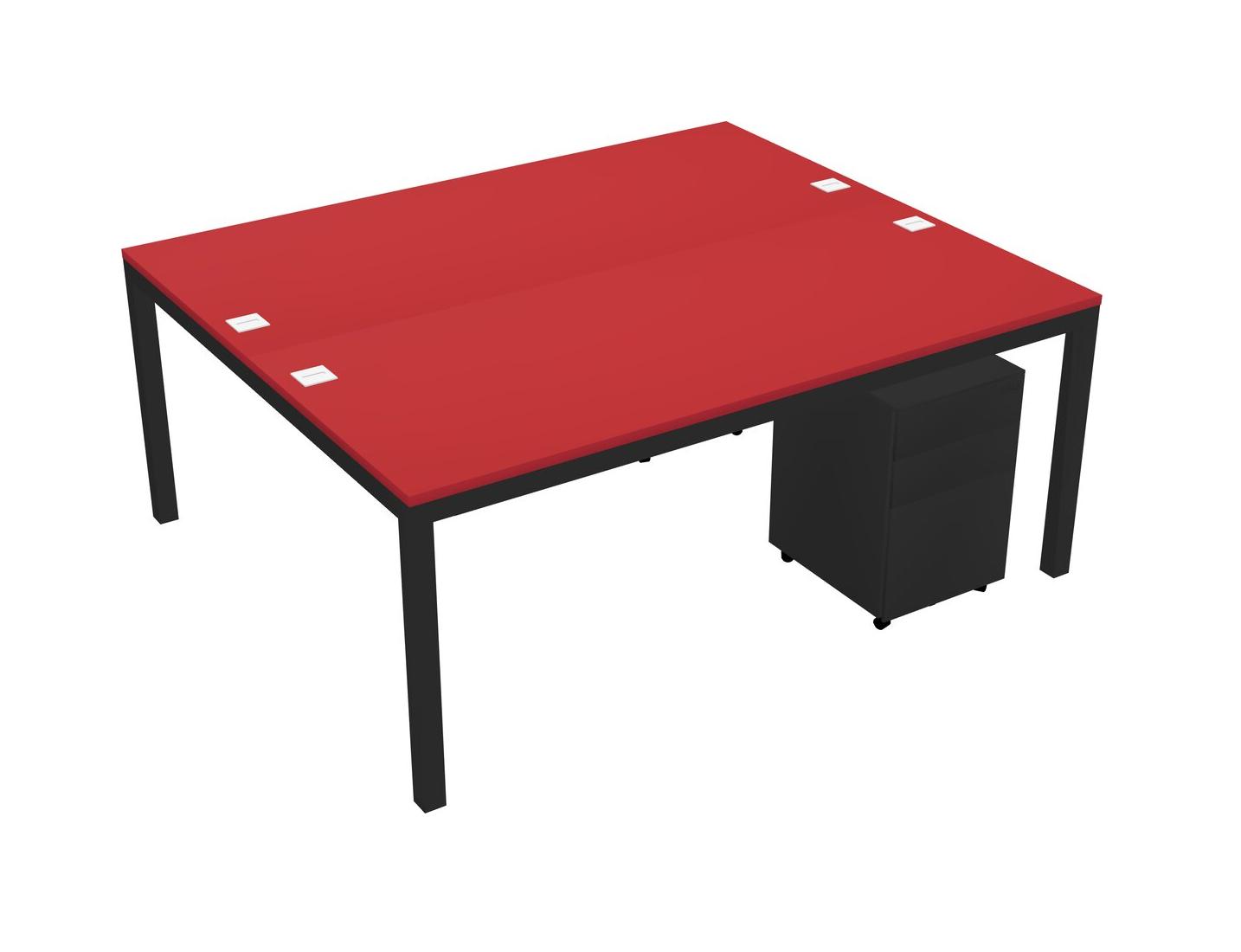 Prism Red Shared Rectangular Office Desk With Metal Mobile Drawers For 2 Persons