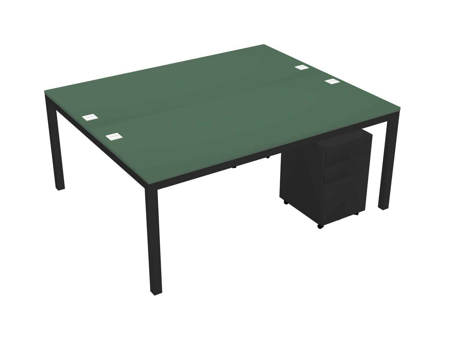 Green Shared Rectangular Office Desk With Metal Mobile Drawers For 2 Persons