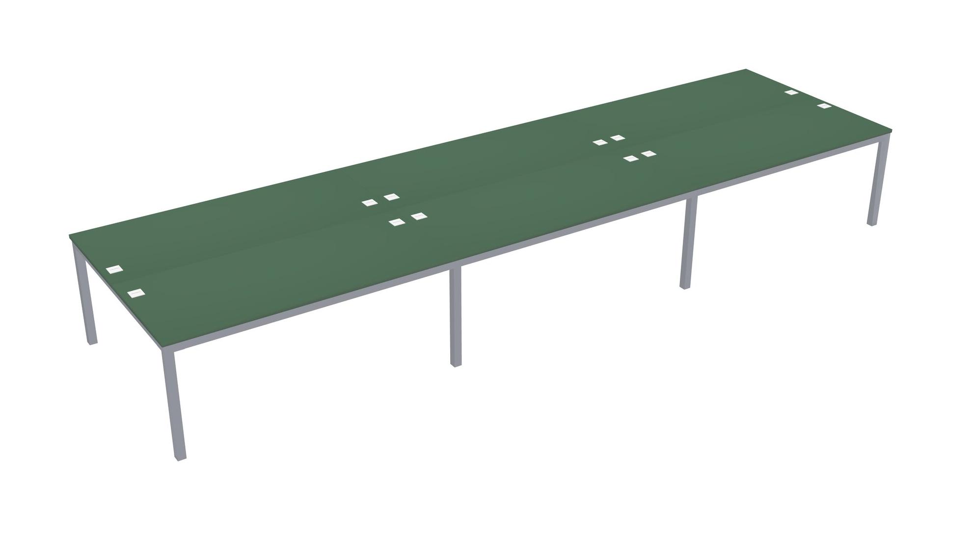 Green Shared Rectangular Office Desk For 6 Persons
