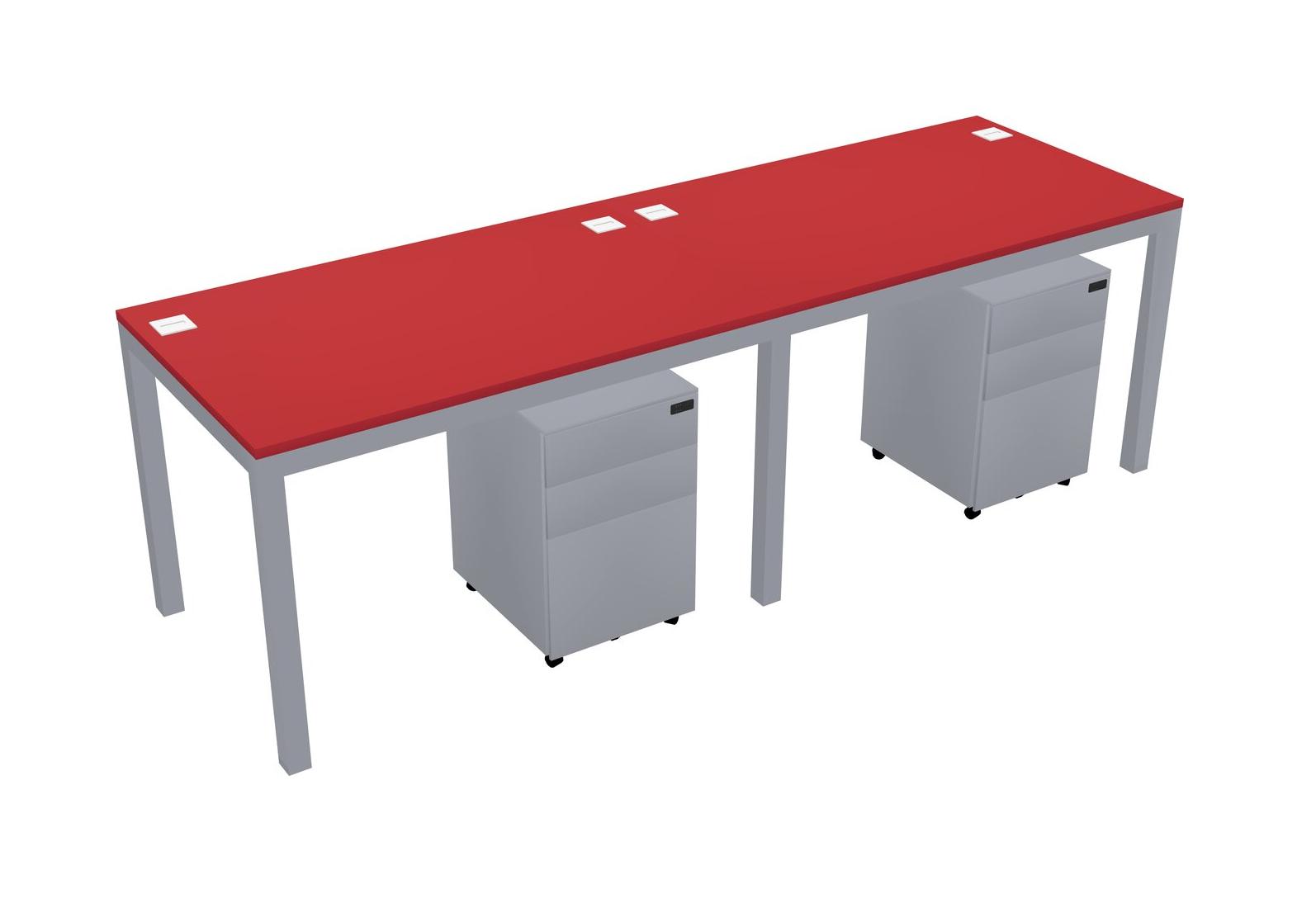 Prism Red Rectangular Office Desk With Metal Mobile Drawers For 2 Persons