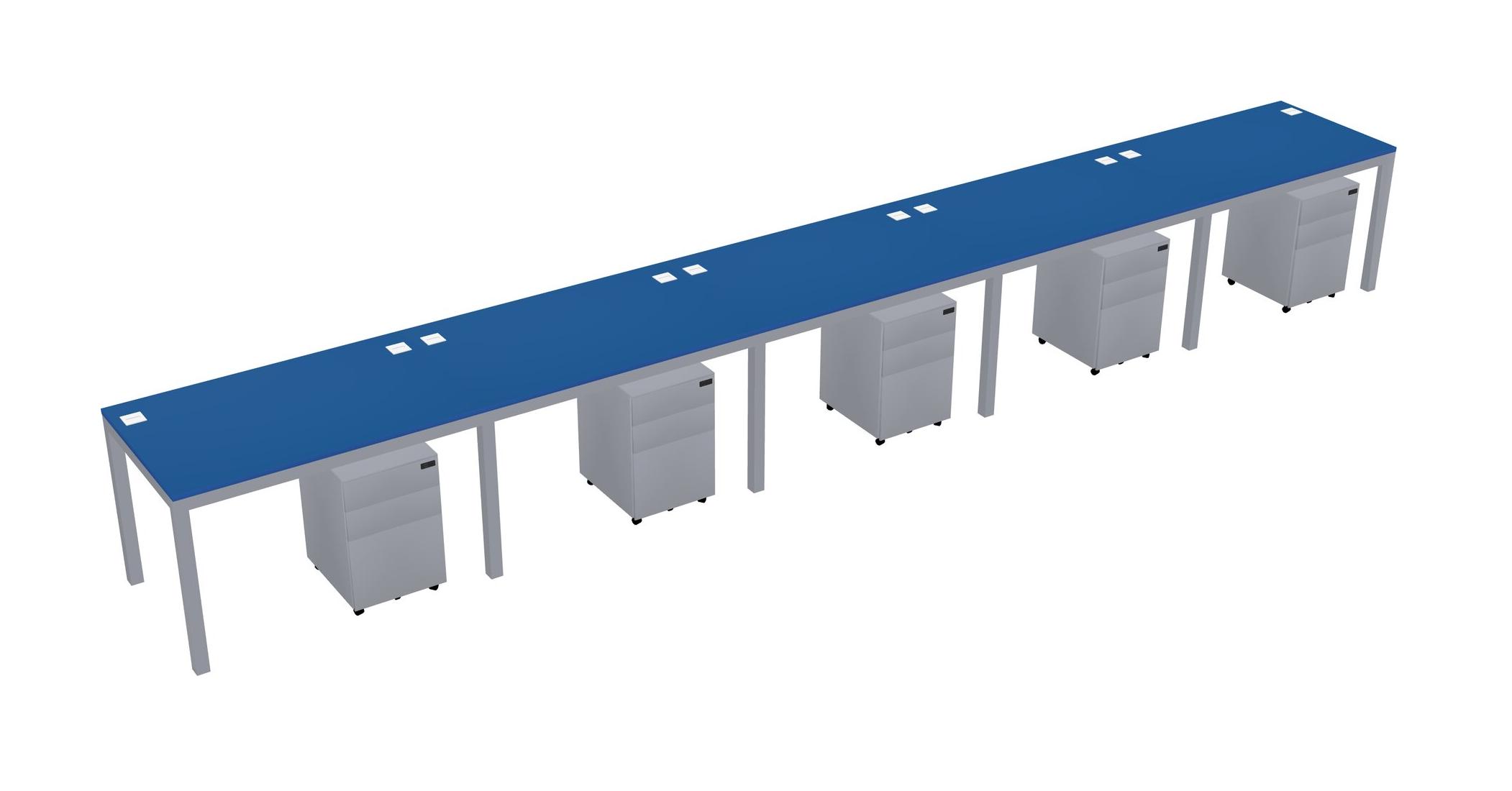 Prism Blue Rectangular Office Desk With Metal Mobile Drawers For 5 Persons