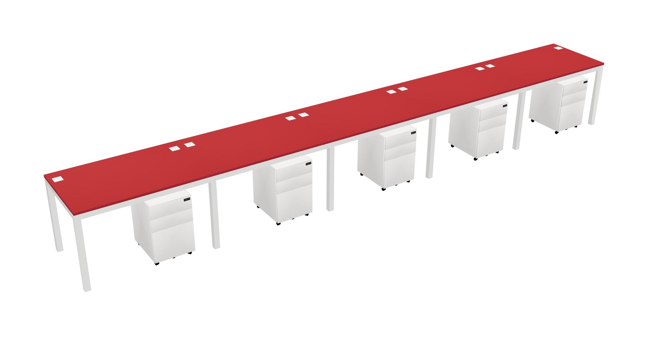 Prism Red Rectangular Office Desk With Metal Mobile Drawers For 5 Persons