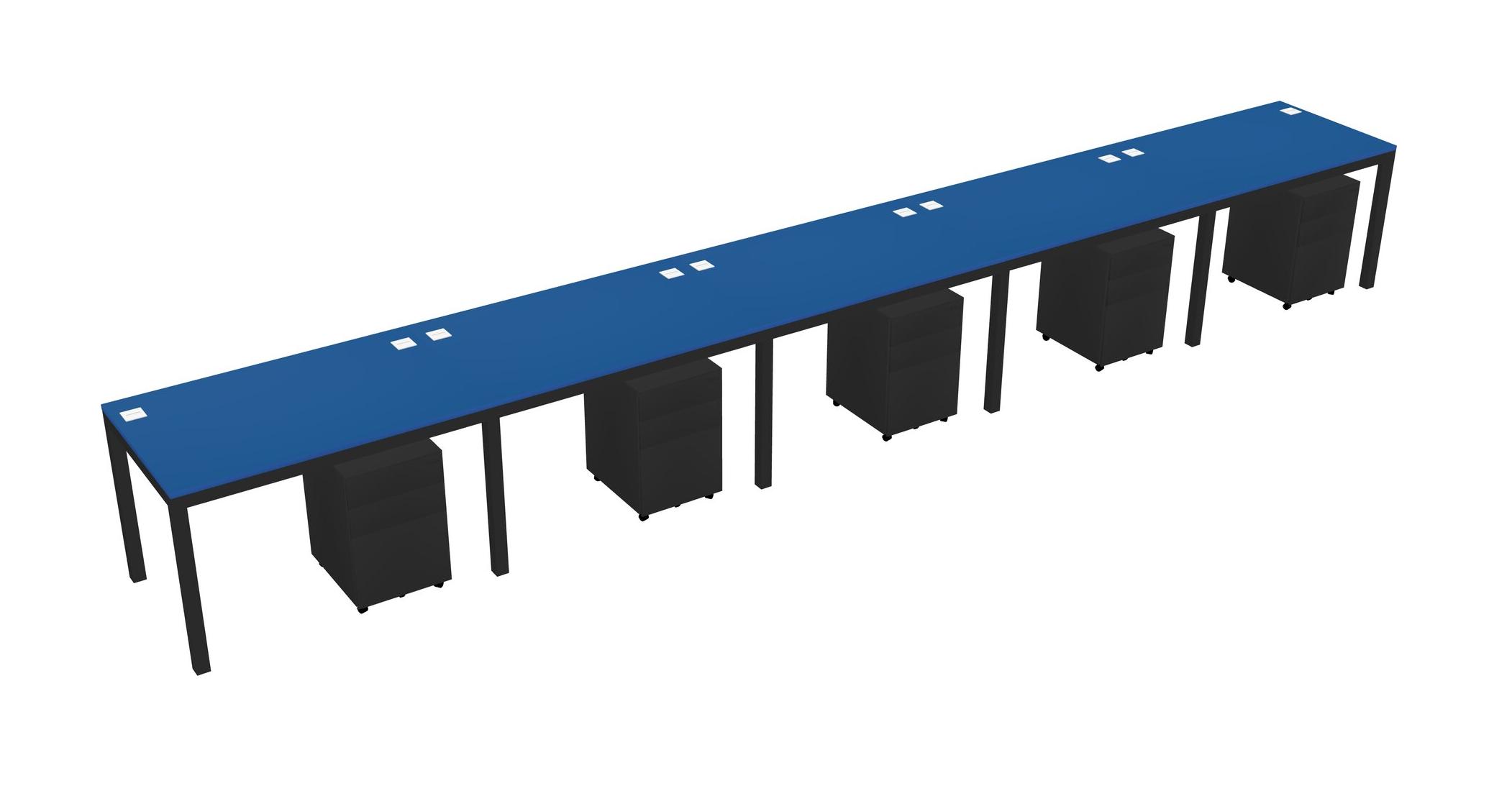 Prism Blue Rectangular Office Desk With Metal Mobile Drawers For 5 Persons