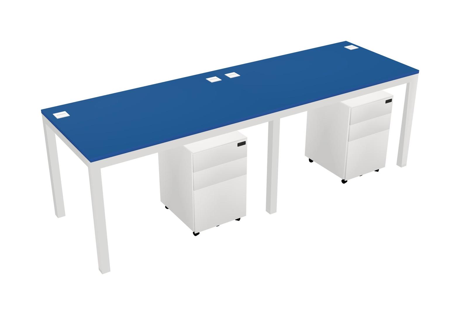 Prism Blue Rectangular Office Desk With Metal Mobile Drawers For 2 Persons