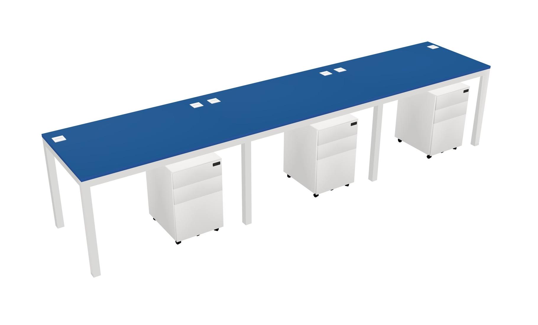 Prism Blue Rectangular Office Desk With Metal Mobile Drawers For 3 Persons