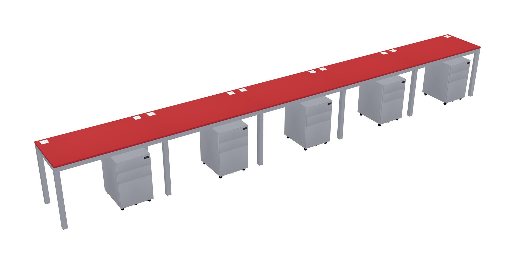 Prism Red Rectangular Office Desk With Metal Mobile Drawers For 5 Persons