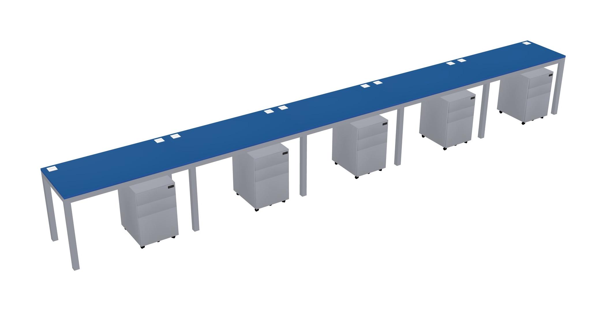 Prism Blue Rectangular Office Desk With Metal Mobile Drawers For 5 Persons