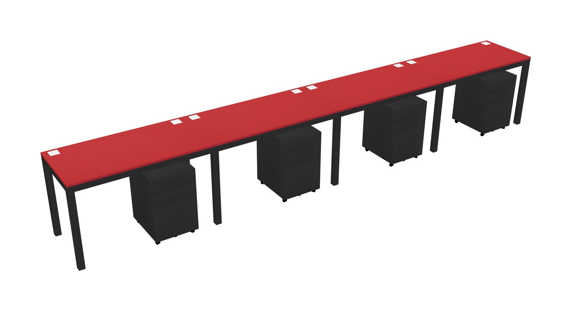 Prism Red Rectangular Office Desk With Metal Mobile Drawers For 4 Persons