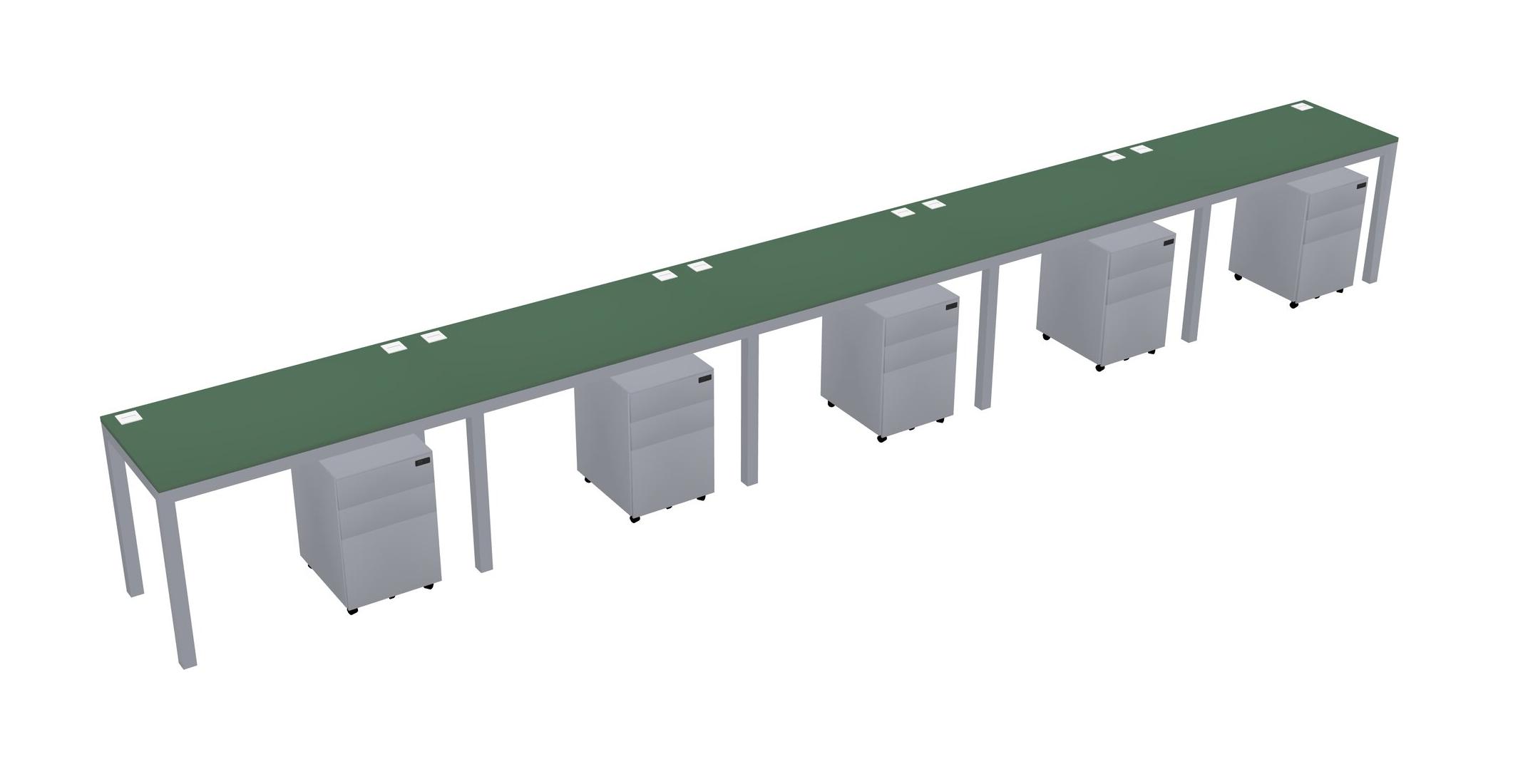 Green Rectangular Office Desk With Metal Mobile Drawers For 5 Persons
