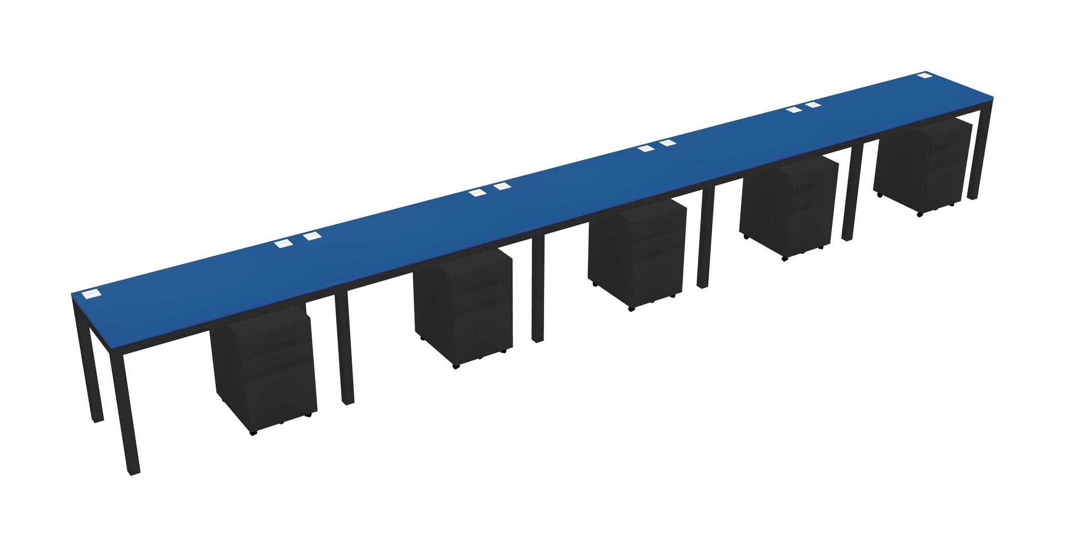 Prism Blue Rectangular Office Desk With Metal Mobile Drawers For 5 Persons