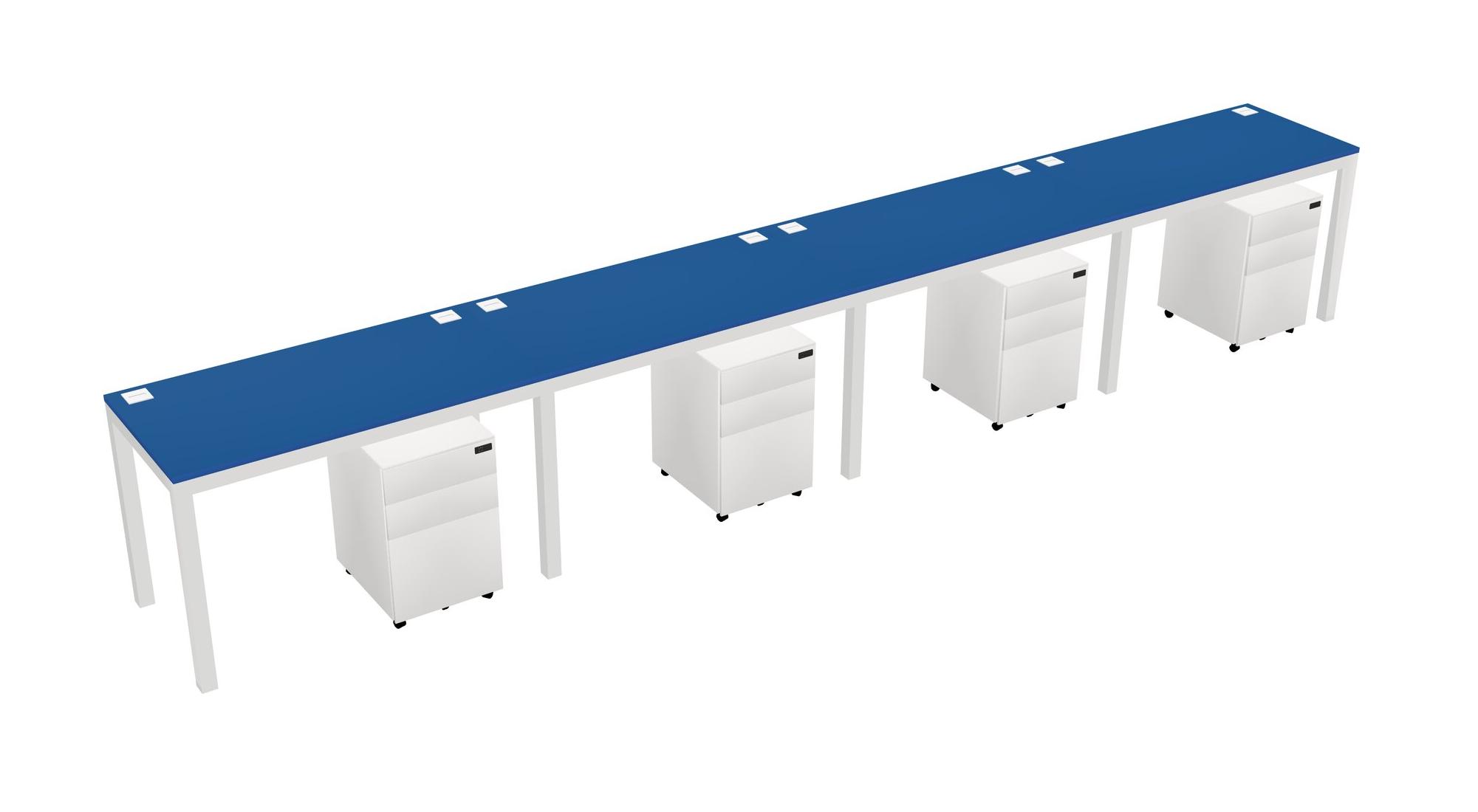Prism Blue Rectangular Office Desk With Metal Mobile Drawers For 4 Persons
