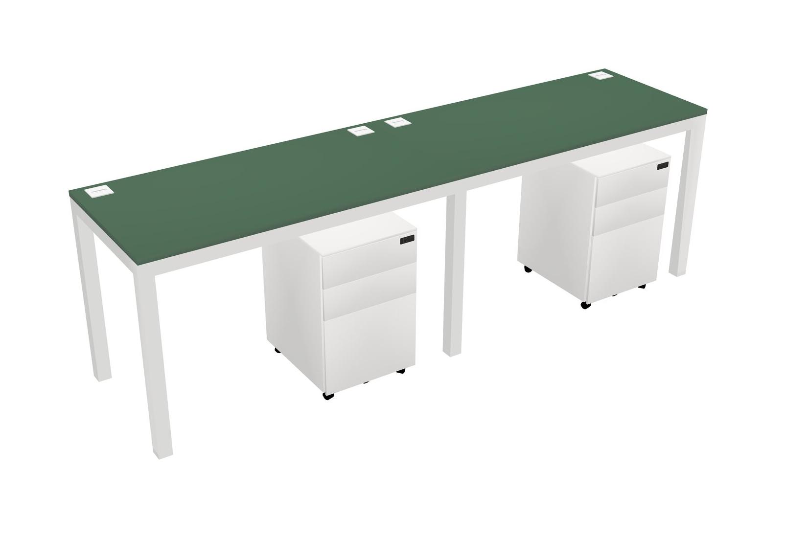 Green Rectangular Office Desk With Metal Mobile Drawers For 2 Persons