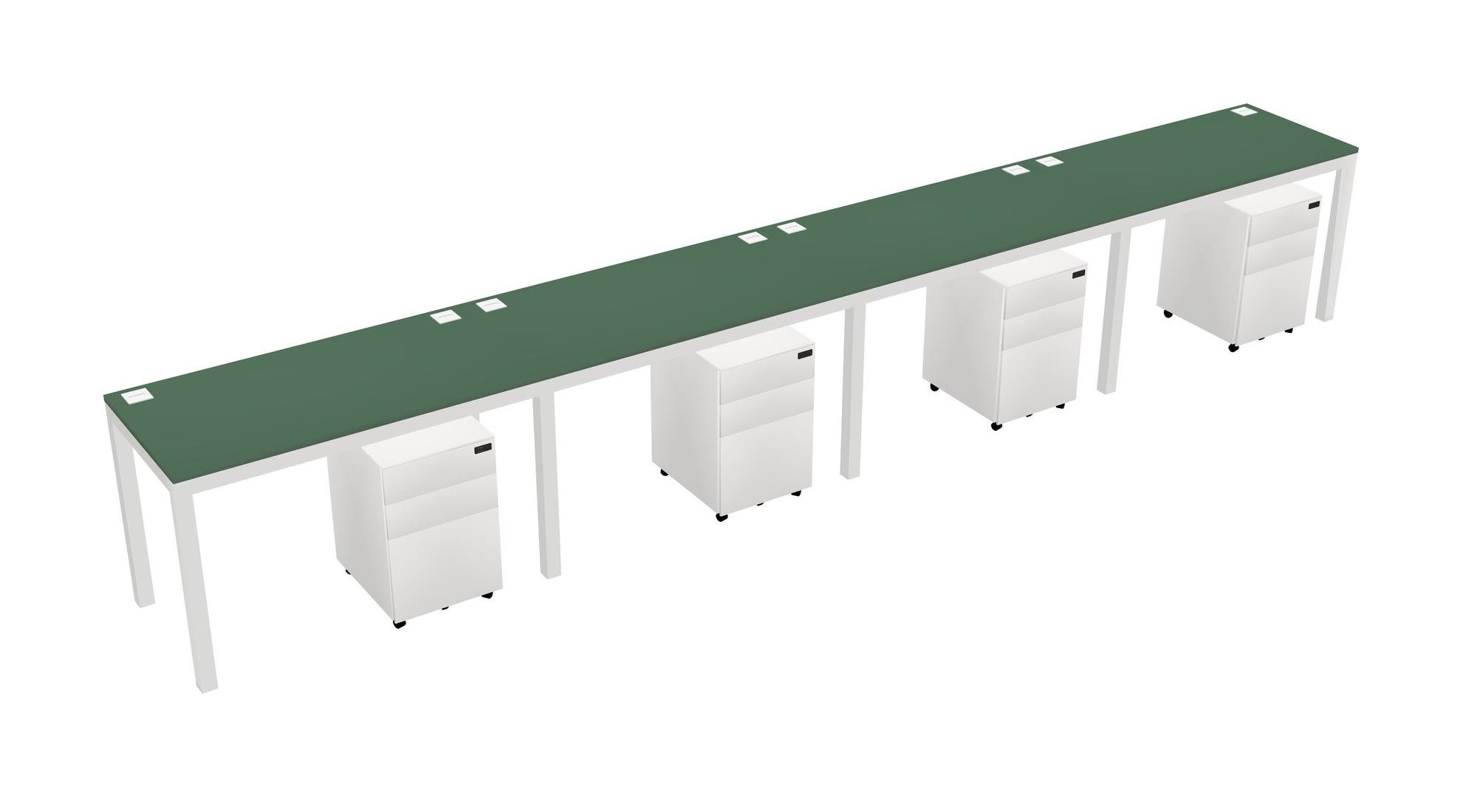 Green Rectangular Office Desk With Metal Mobile Drawers For 4 Persons