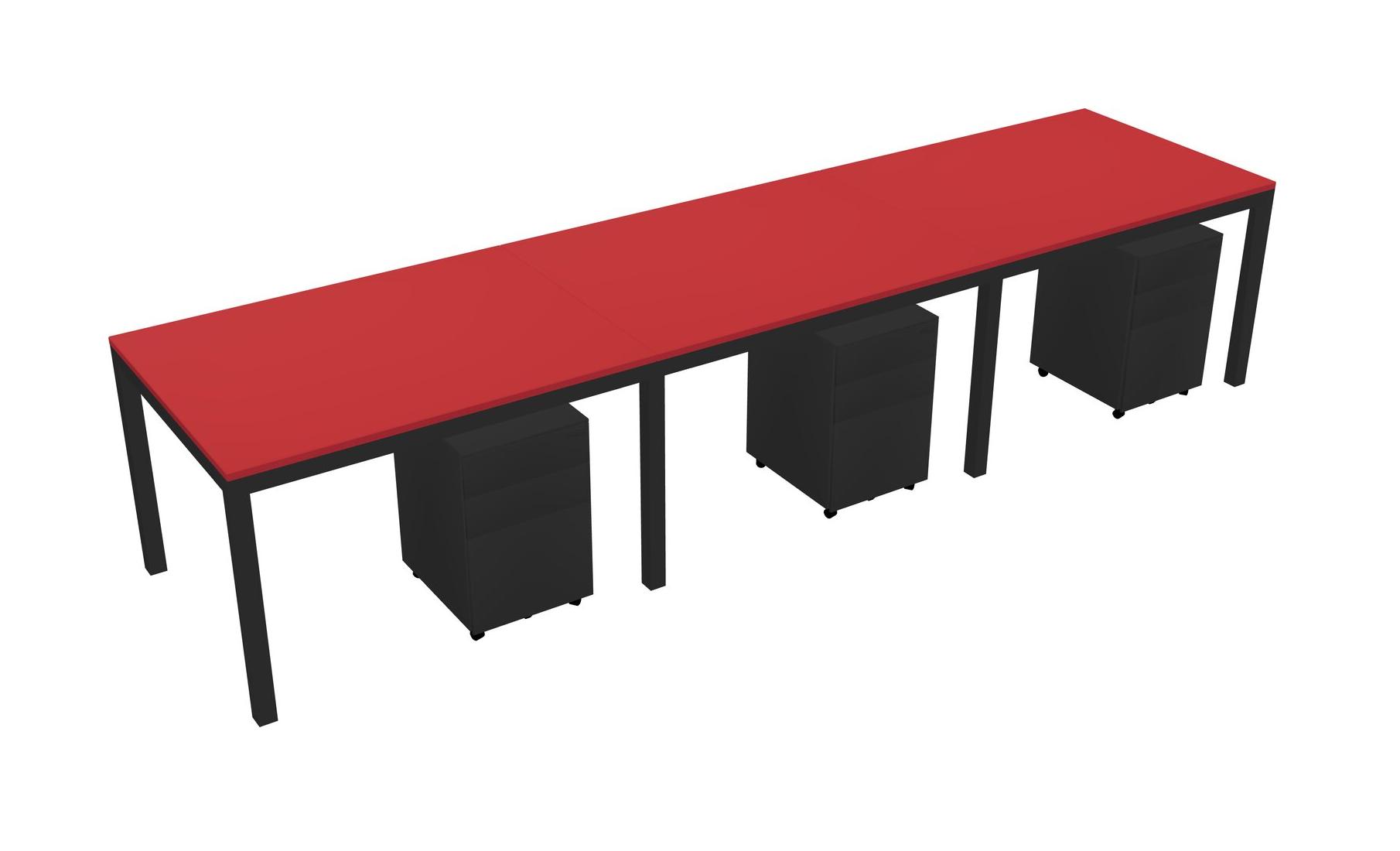 Prism Red Rectangular Office Desk With Metal Mobile Drawers For 3 Persons