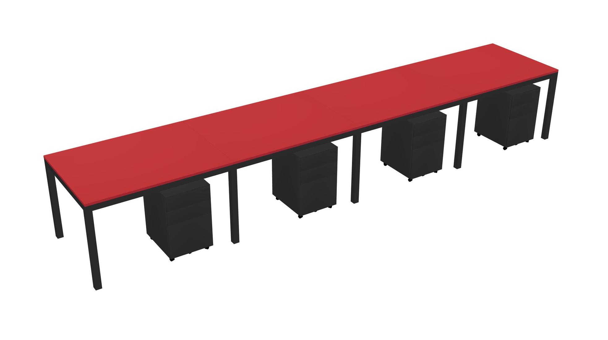 Prism Red Rectangular Office Desk With Metal Mobile Drawers For 4 Persons
