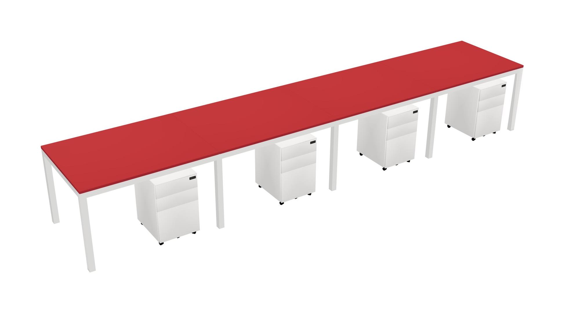Prism Red Rectangular Office Desk With Metal Mobile Drawers For 4 Persons