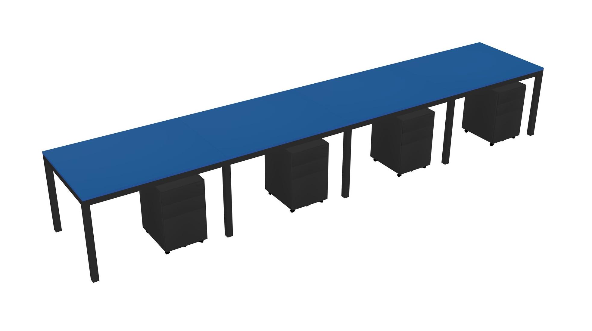 Prism Blue Rectangular Office Desk With Metal Mobile Drawers For 4 Persons