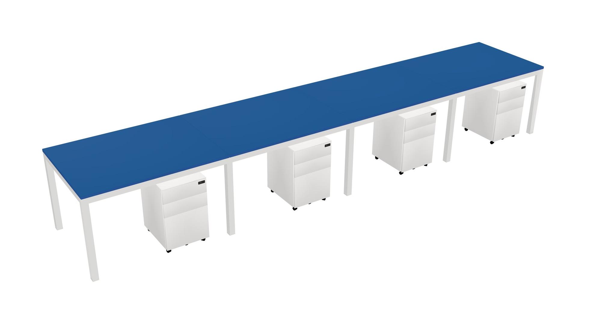 Prism Blue Rectangular Office Desk With Metal Mobile Drawers For 4 Persons