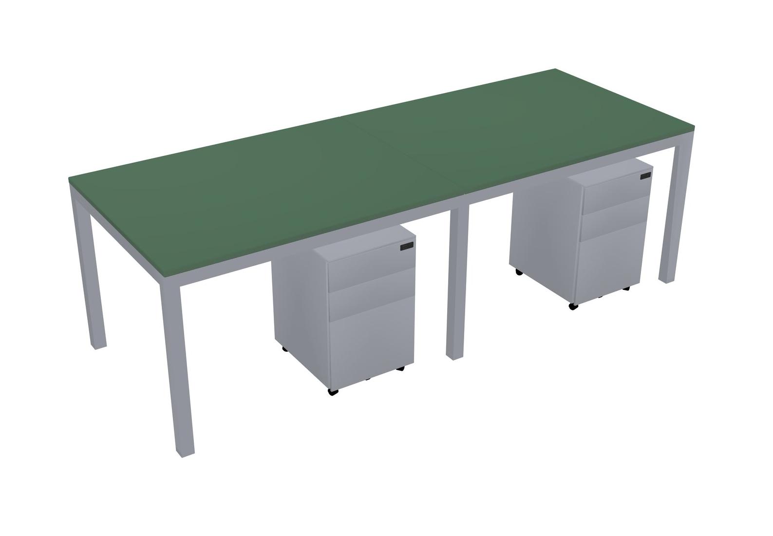 Green Rectangular Office Desk With Metal Mobile Drawers For 2 Persons