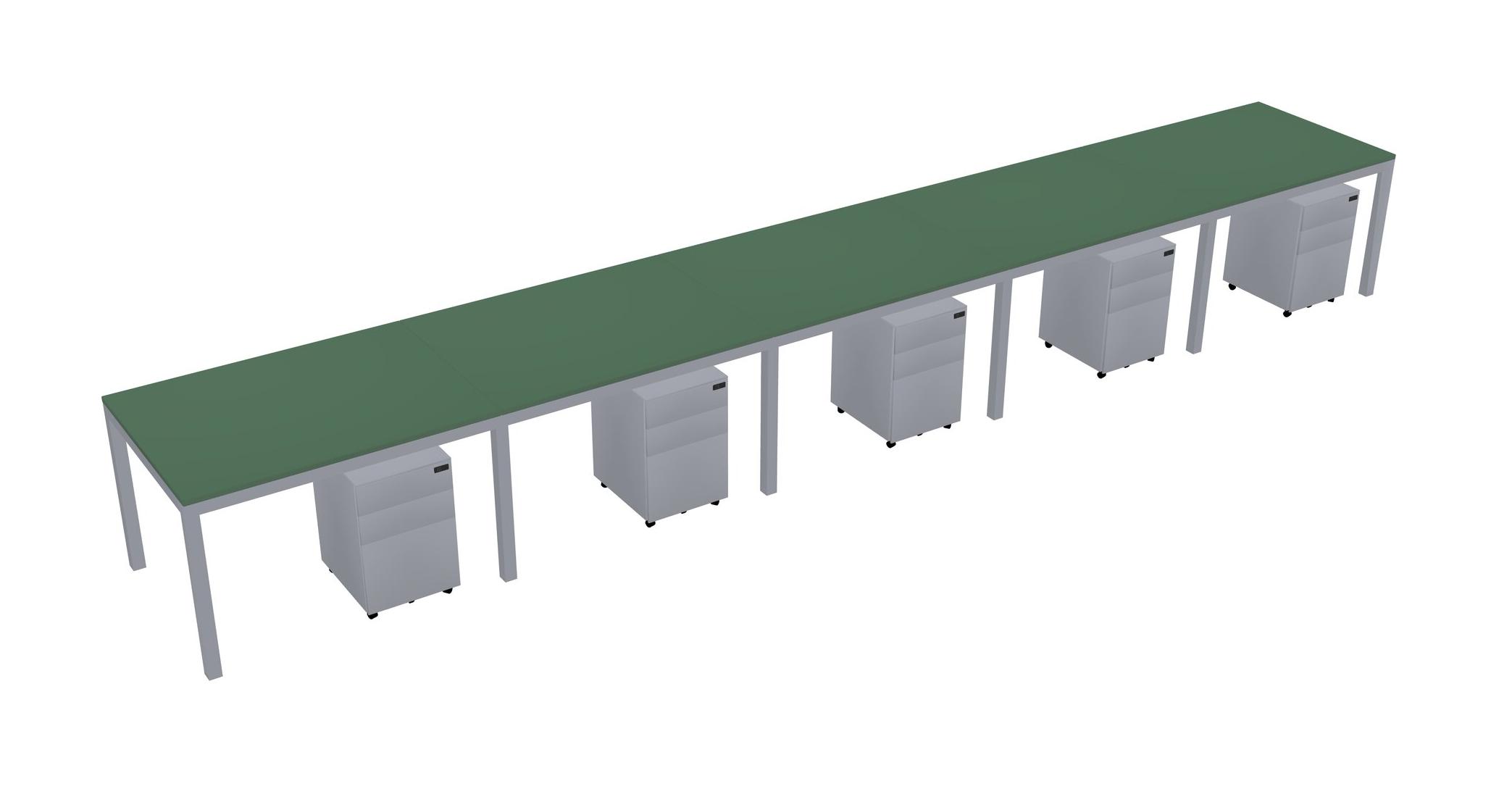 Green Rectangular Office Desk With Metal Mobile Drawers For 5 Persons