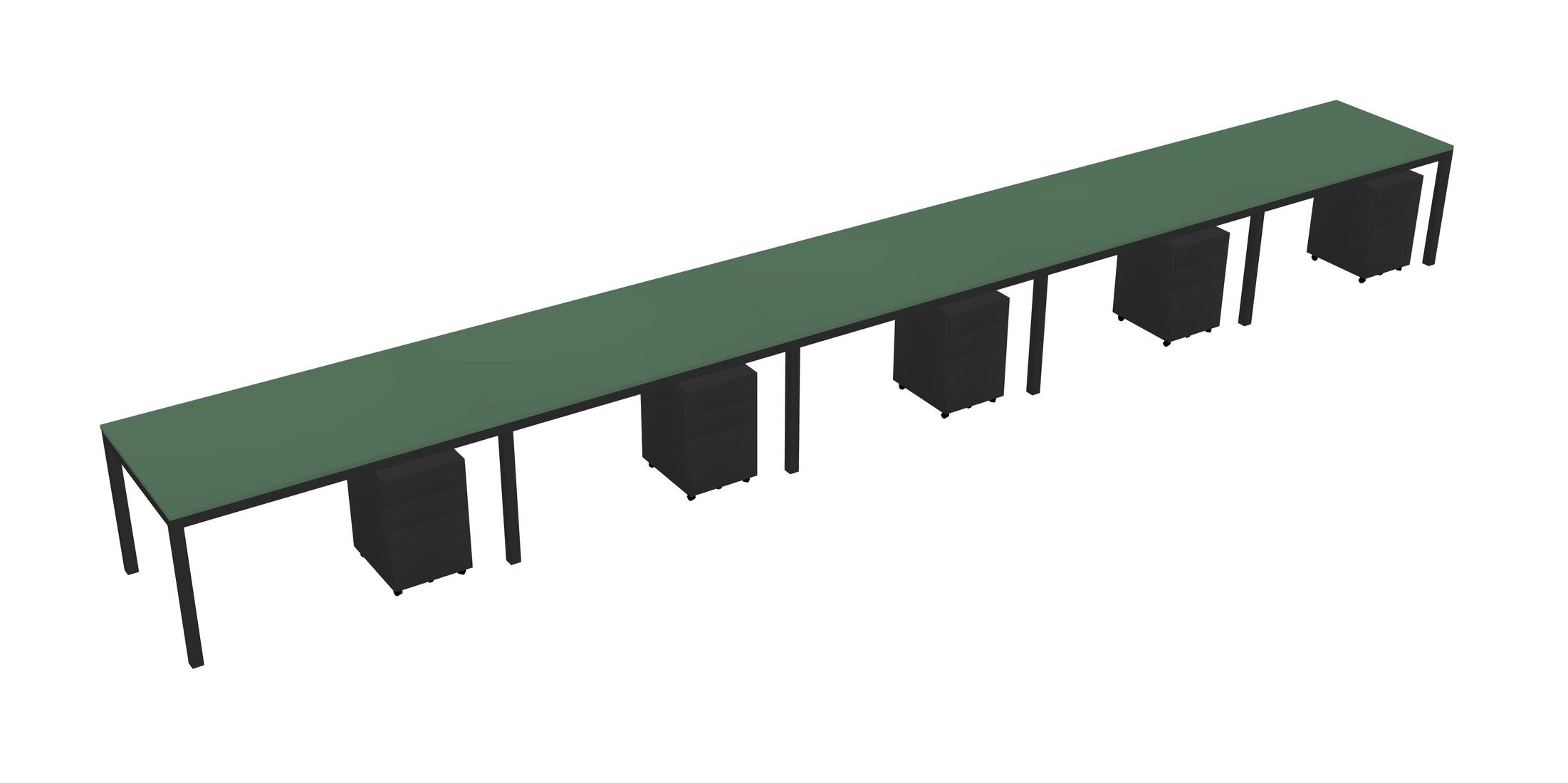 Green Rectangular Office Desk With Metal Mobile Drawers For 5 Persons