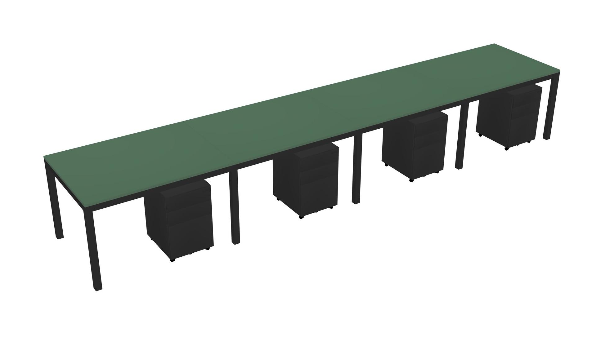 Green Rectangular Office Desk With Metal Mobile Drawers For 4 Persons