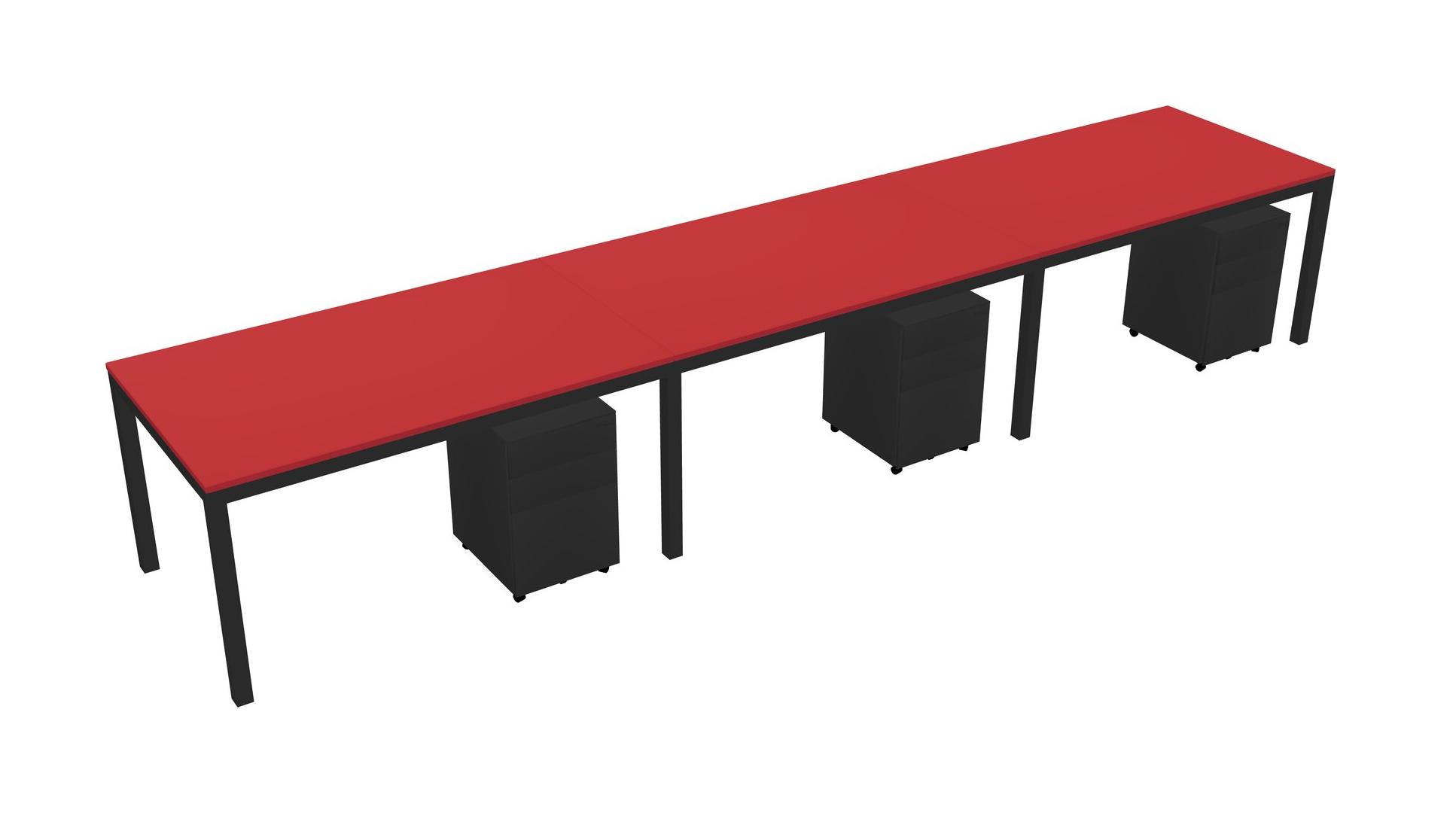 Prism Red Rectangular Office Desk With Metal Mobile Drawers For 3 Persons