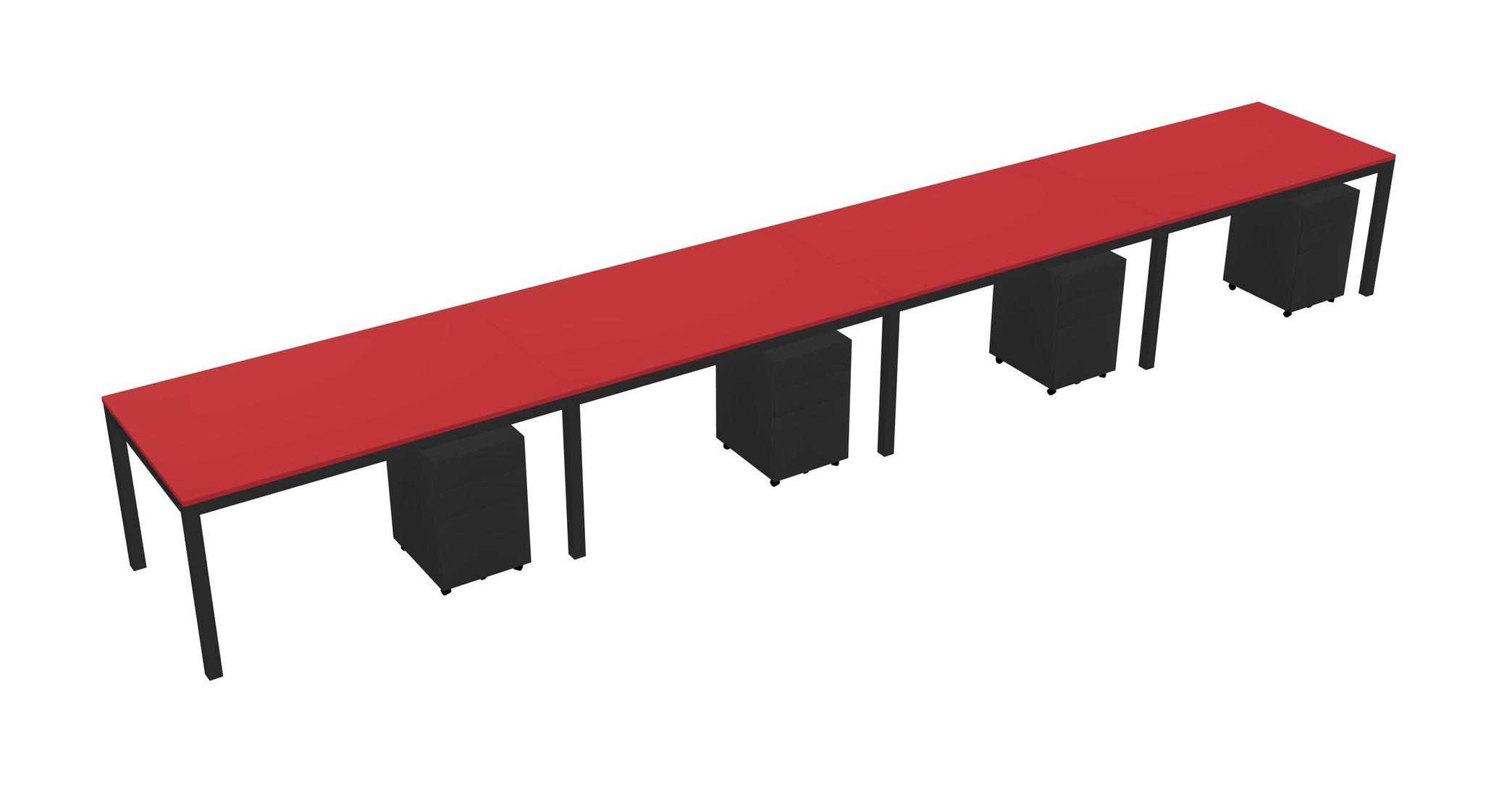 Prism Red Rectangular Office Desk With Metal Mobile Drawers For 4 Persons