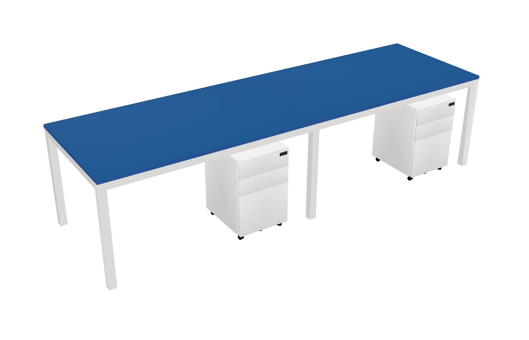 Prism Blue Rectangular Office Desk With Metal Mobile Drawers For 2 Persons