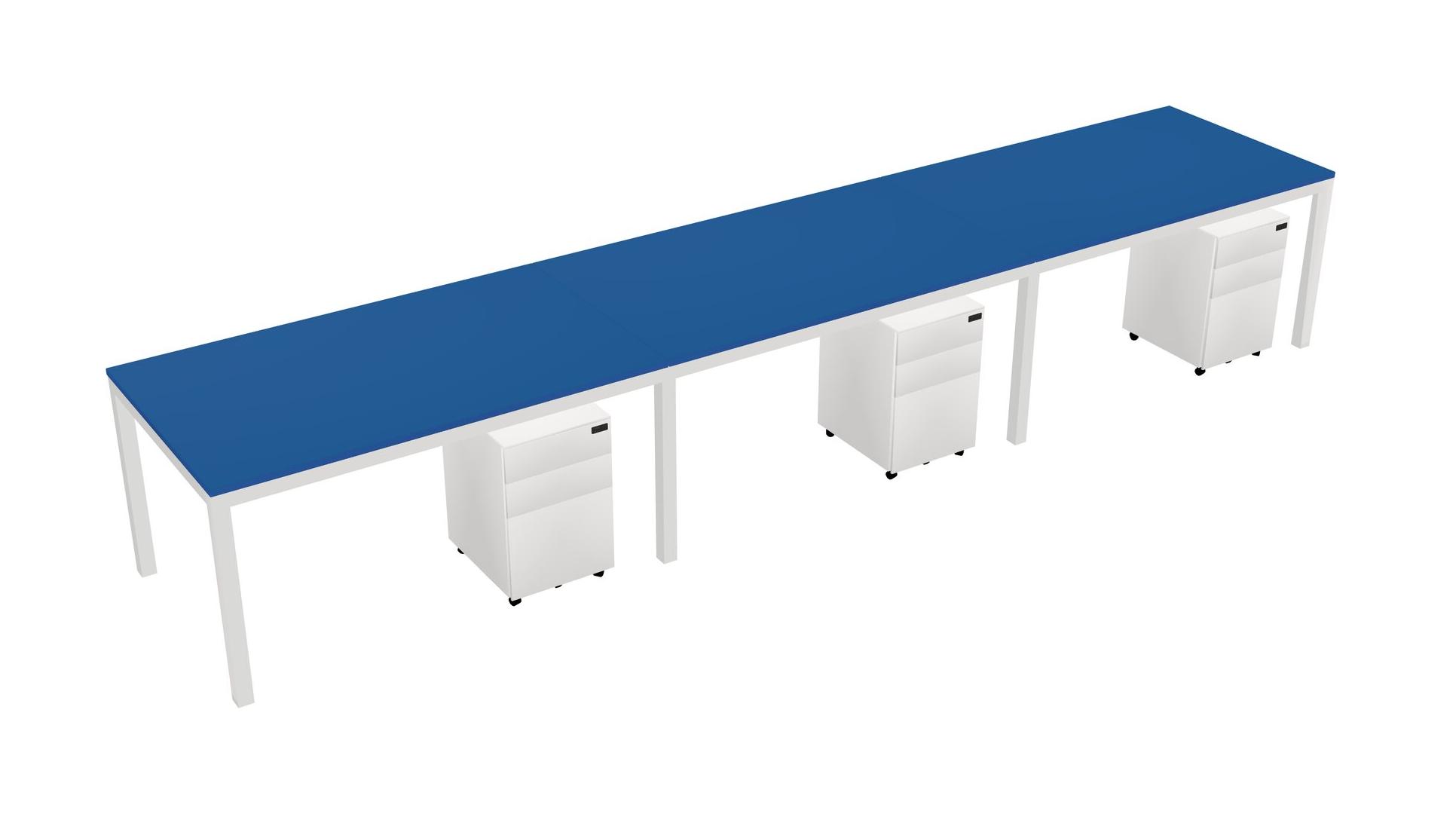 Prism Blue Rectangular Office Desk With Metal Mobile Drawers For 3 Persons