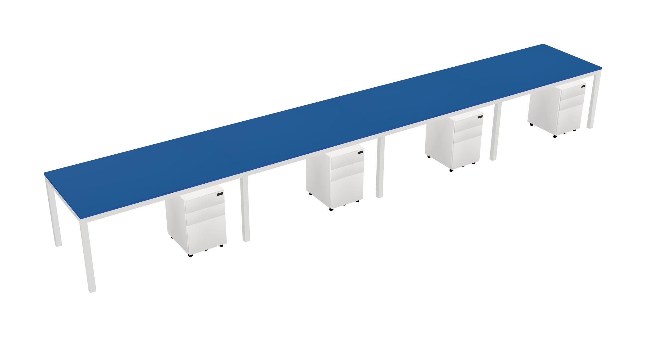 Prism Blue Rectangular Office Desk With Metal Mobile Drawers For 4 Persons