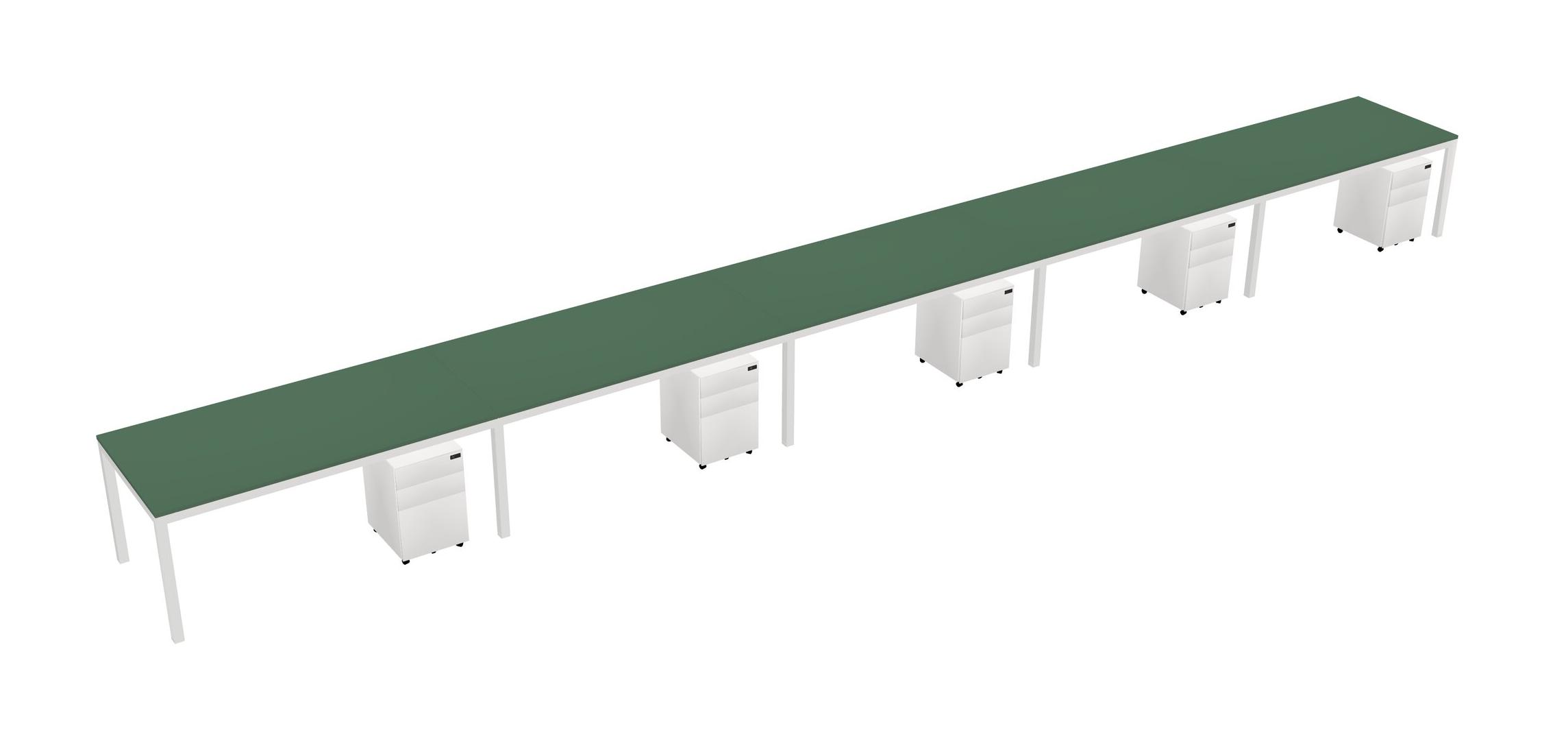 Green Rectangular Office Desk With Metal Mobile Drawers For 5 Persons
