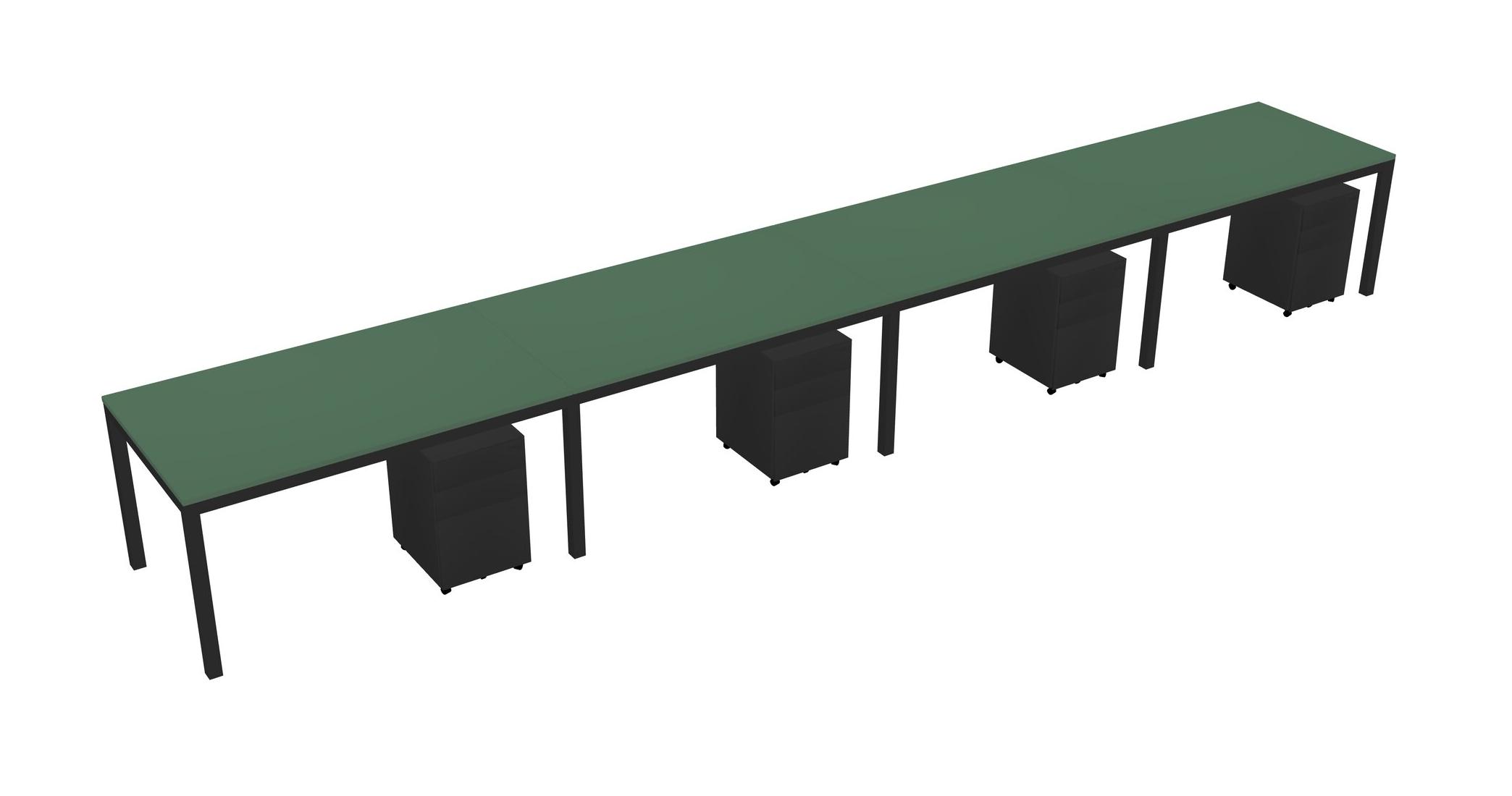 Green Rectangular Office Desk With Metal Mobile Drawers For 4 Persons