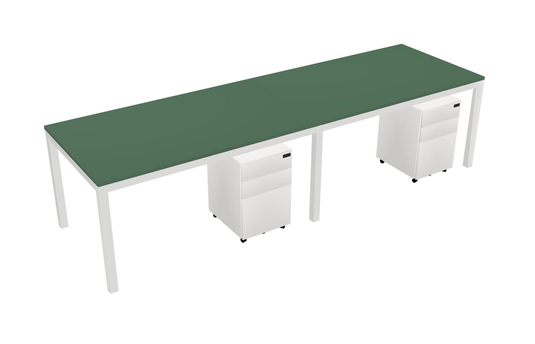 Green Rectangular Office Desk With Metal Mobile Drawers For 2 Persons